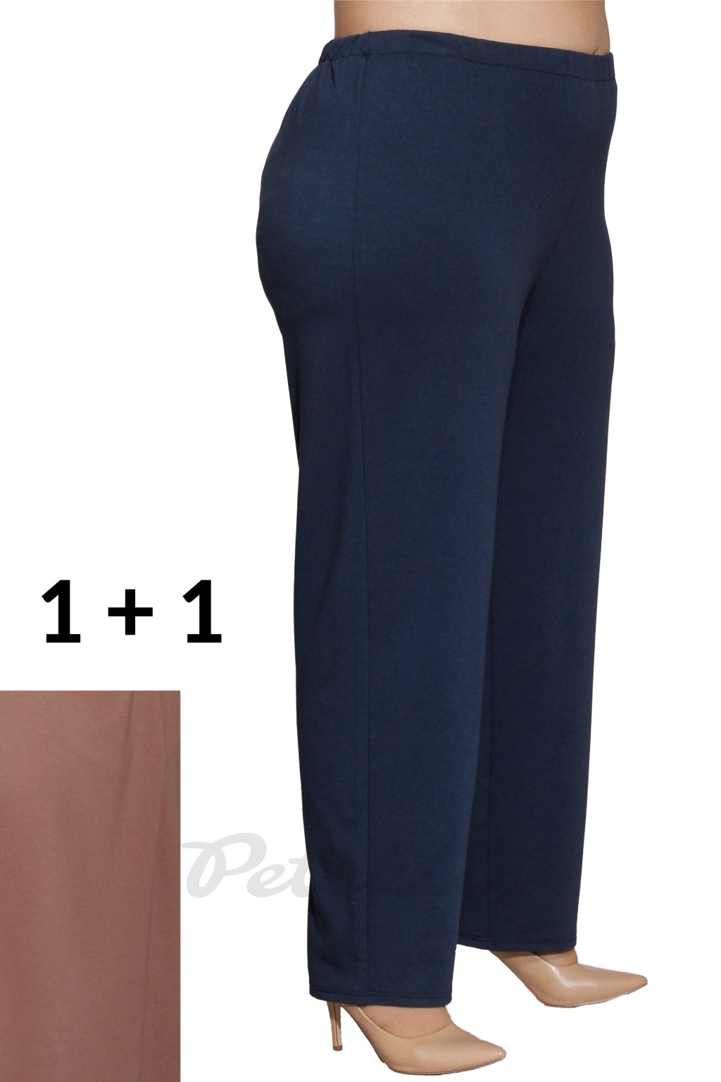 1 + 1 jednoduché rovné kalhoty bez kapes, pas do gumy. Barva je velmi praktická, materiál vhodný i jako běžný na ven. Nabízíme 3 délky.