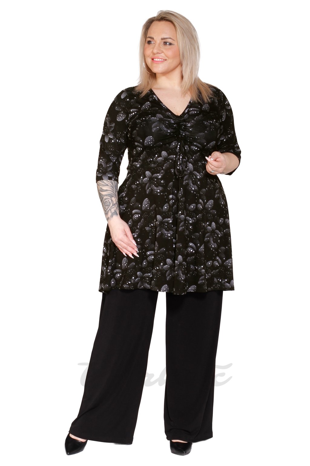 Áčková tunika Halka květy s kapkami na černé - varianty