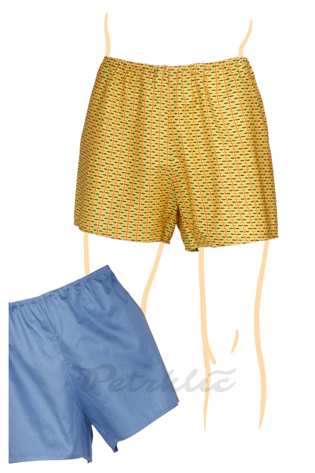 Bavlněné šortky na spaní (potištěné plátno) v délce delších trenek (45 cm) nebo nad kolena (55 cm) z tištěného plátna s klasickou zadní kapsičkou a v pase do široké gumy. Jsou pohodlné a vzdušné. Máte-li rádi hodně volné, kupte si o číslo větší.