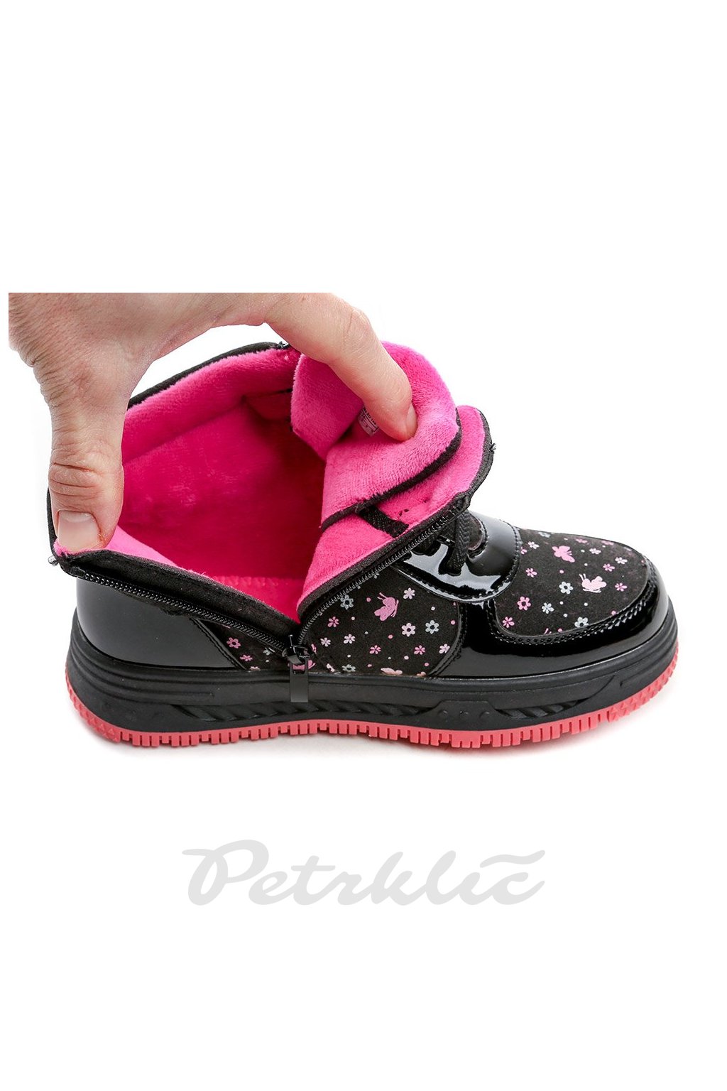 Dětská zimní vycházková obuv se zapínáním na zip. Kvalitní zimní obuv pro běžné chození. Svršek obuvi je vyroben ze syntetického materiálu v kombinaci s textilem. Pěnová podšívka je z textilního materiálu, který tvoří jemný semišový materiál. Váha jednoho páru: 560 g Dětské zimní vycházkové boty.