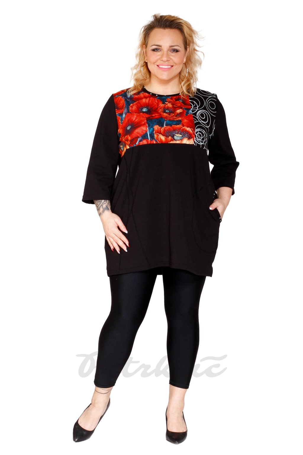 Bavlněná tunika černá 2602 máky vzor v horní části