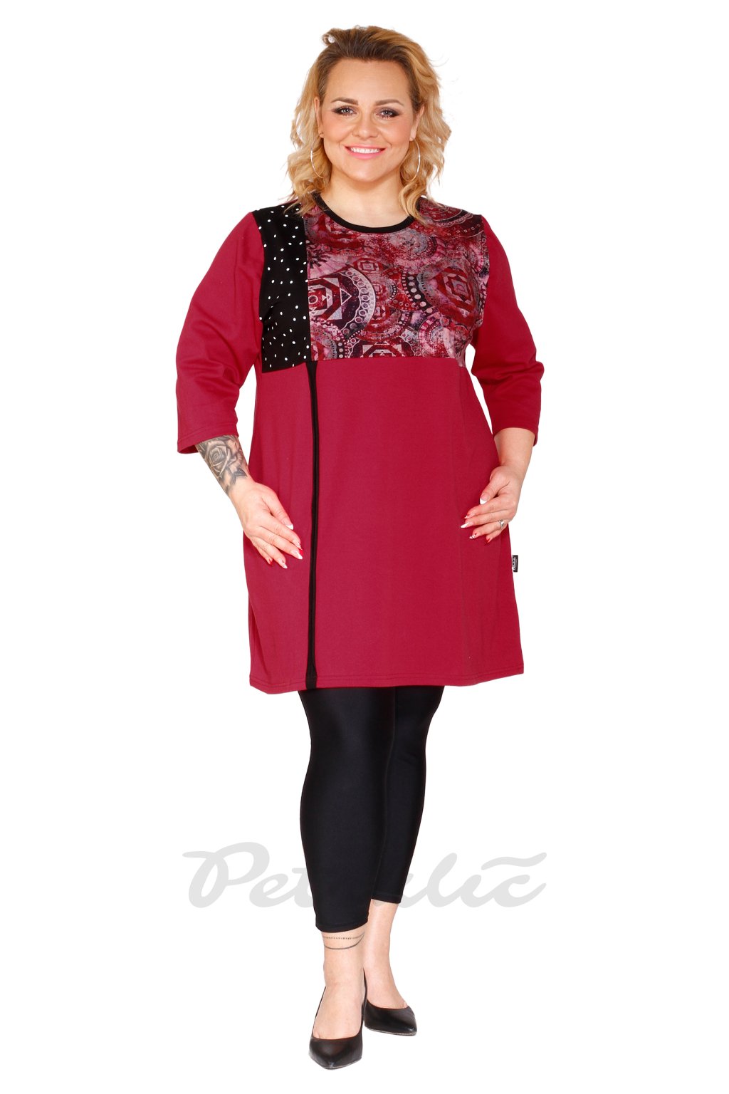 Bavlněná tunika malinová 2601 vzor v horní části