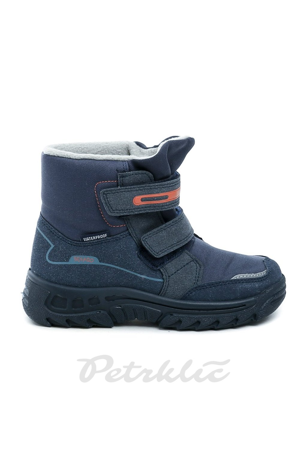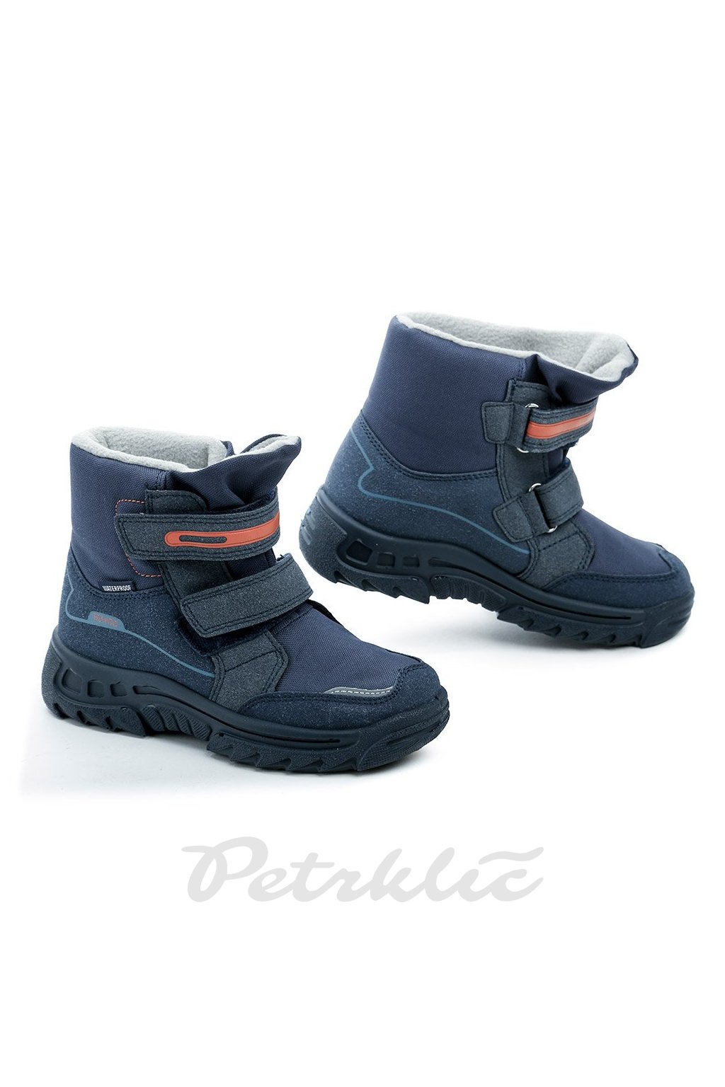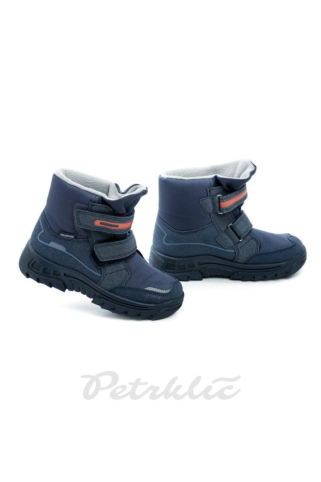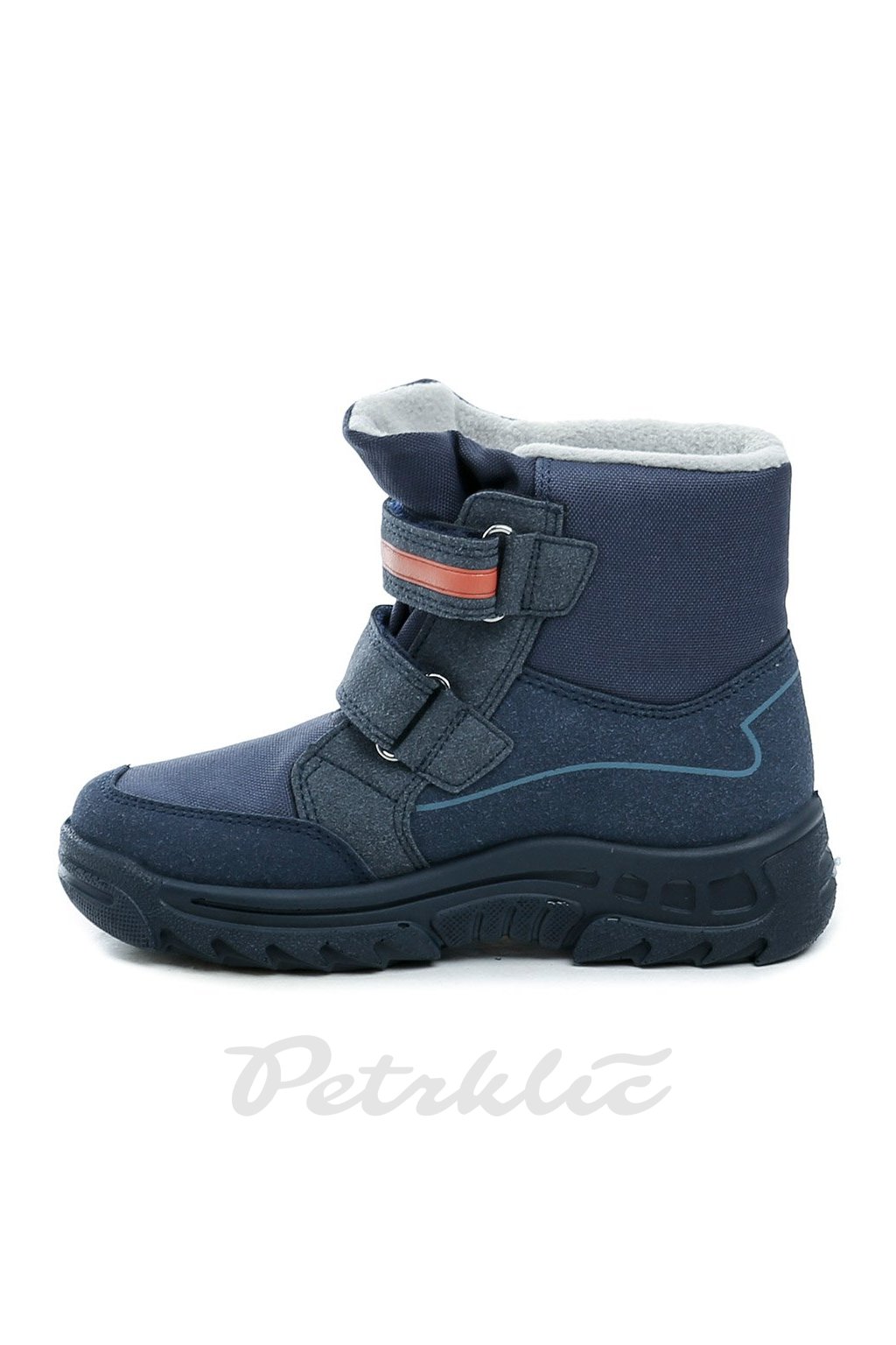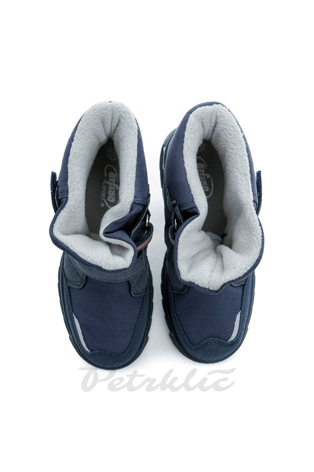 Dětská zimní vycházková kotníčková obuv se zapínáním na suchý zip.  Obuv je vyrobena z textilního materiálu v kombinaci s syntetickým materiálem. Vnitřní část obuvi je vybavena pěnovou textilní podšívkou, která tvoří zateplení. WATERPROOF - voděodolná úprava povrchu svršku. Váha jednoho páru: 530 g Dětské zimní kotníčkové boty.