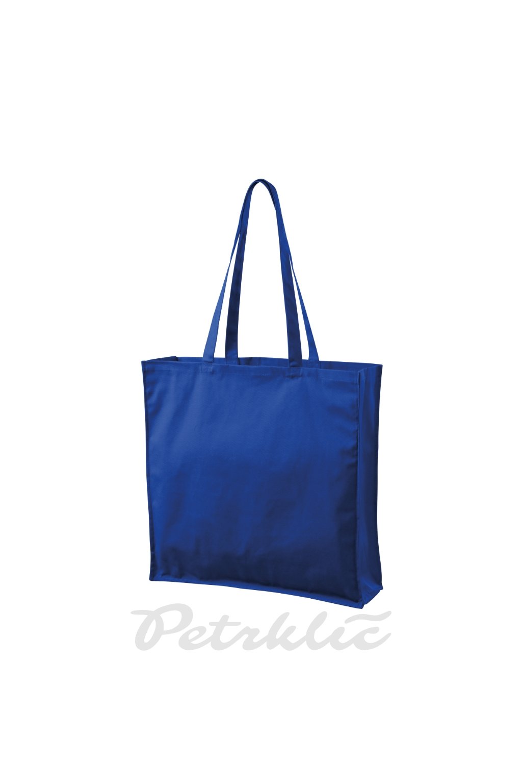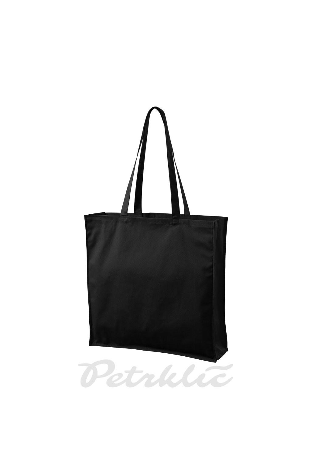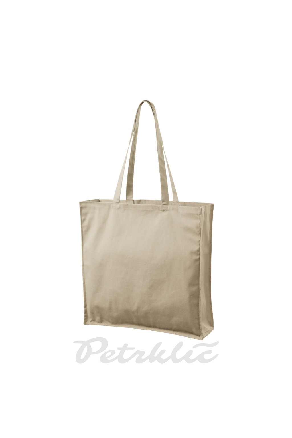 bavlněná tkaná taška vyšší gramáže, střih s bočními díly, praktická a skladná, délka popruhů vhodná pro nošení v ruce i přes rameno, křížové prošití popruhů pro vyšší odolnost, rozměry tašky 43 x 43 x 12 cm, popruhy 70 x 2,5 cm