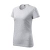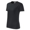 Lehce vypasovaný střih s bočními švy, úzký lem průkrčníku z žebrového úpletu 1:1, vnitřní část průkrčníku začištěna páskou z vrchového materiálu, zpevnění ramenních švů páskou.