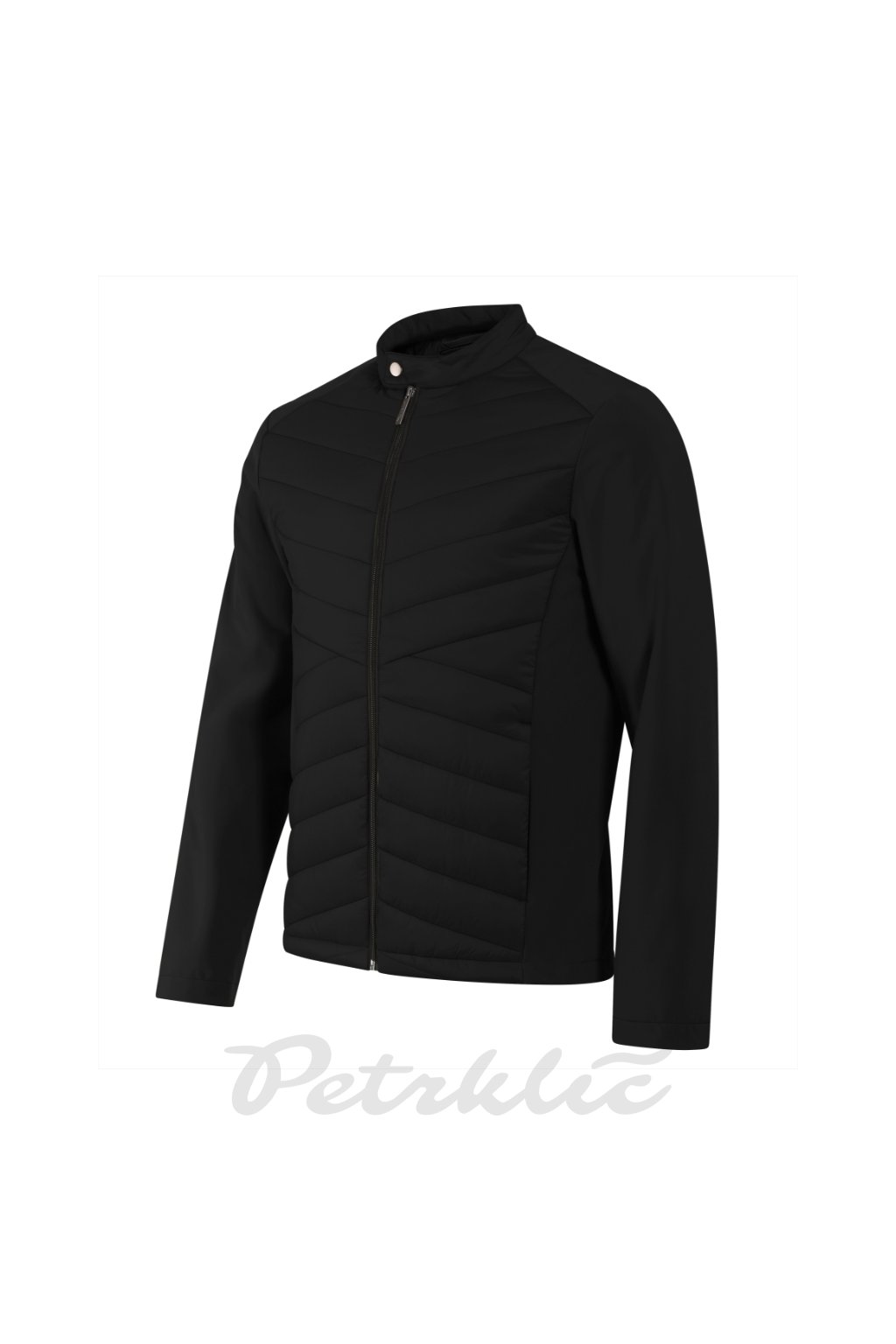 kombinace prošívaného a softshellového materiálu, rovný střih s bočními díly, stojáček na druk, celopropínací spirálový zip , boční kapsy se spirálovým zipem, vnitřní náprsní kapsa na zip, vstup pro branding v podšívce zadního dílu