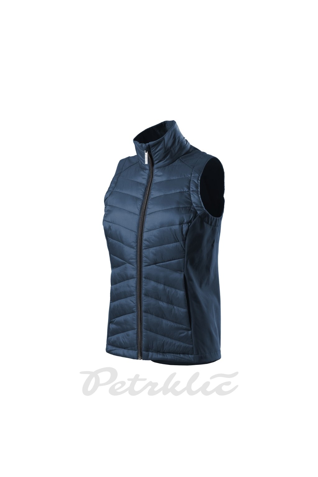 kombinace prošívaného a softshellového materiálu, střih tvarovaný bočními díly, celopropínací spirálový zip s krytkou brady, boční kapsy se spirálovým zipem, vnitřní náprsní kapsa na zip, tvarovaný a mírně prodloužený zadní díl , vstup pro branding v podšívce zadního dílu