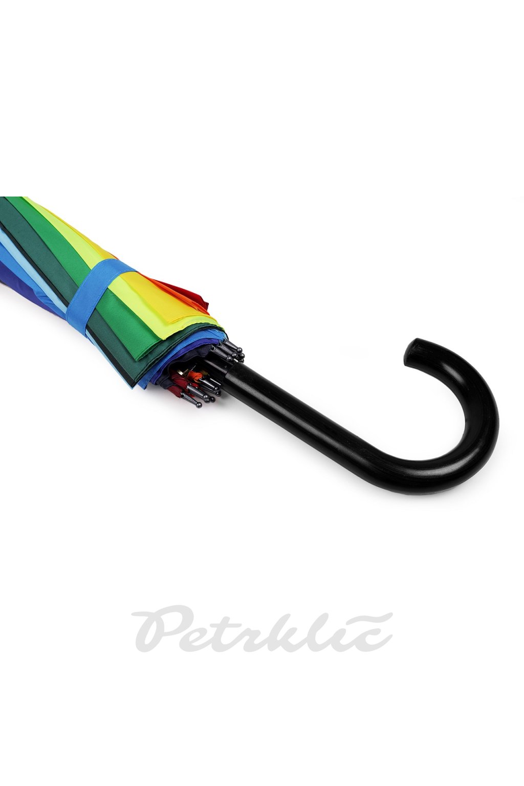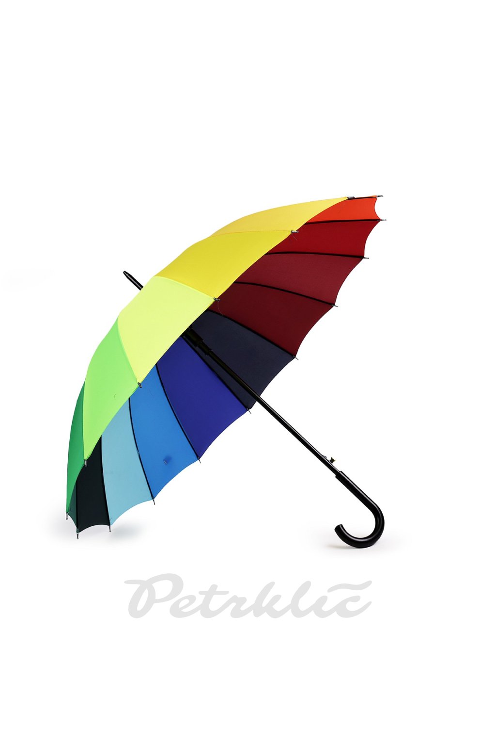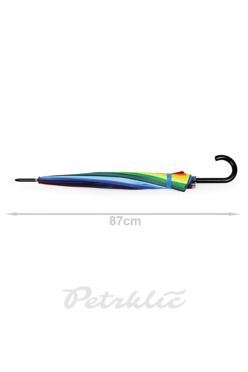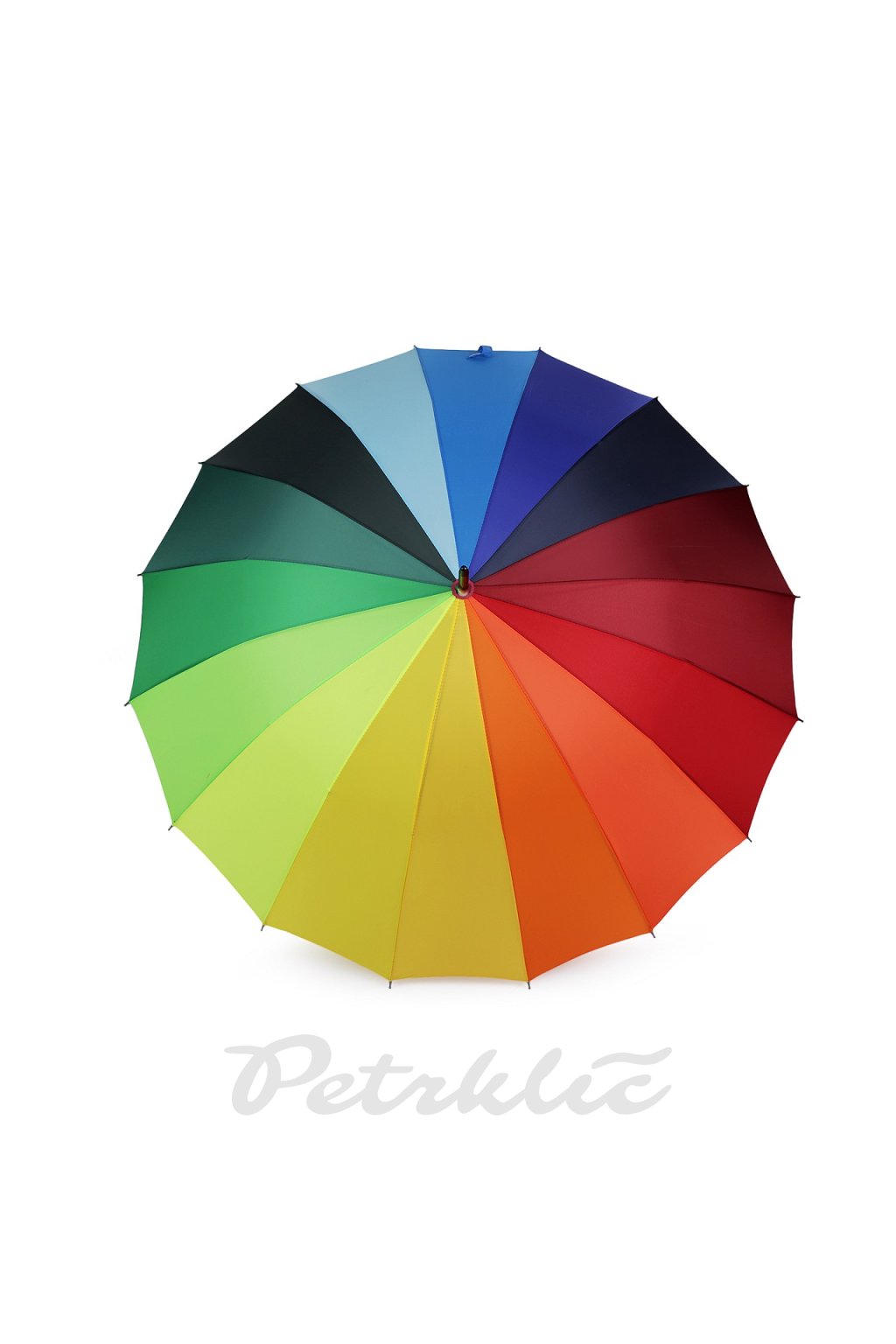 Duhový vystřelovací deštník vás spolehlivě ochrání před nepřízní počasí. Skládá se z 16 výsečí, díky kterým se deštník řadí mezi špičkové kousky. Konstrukce je vyrobena z pružných lamel zajišťujících vysokou pevnost a stabilitu. Deštník má klasickou tyč zakončenou pevnou rukojetí.