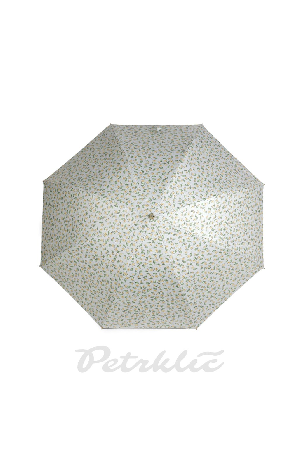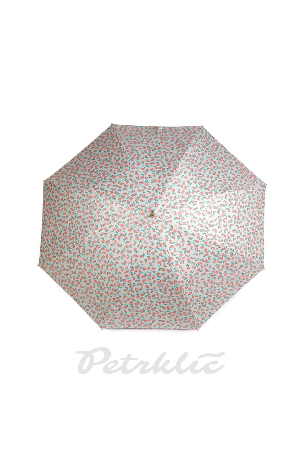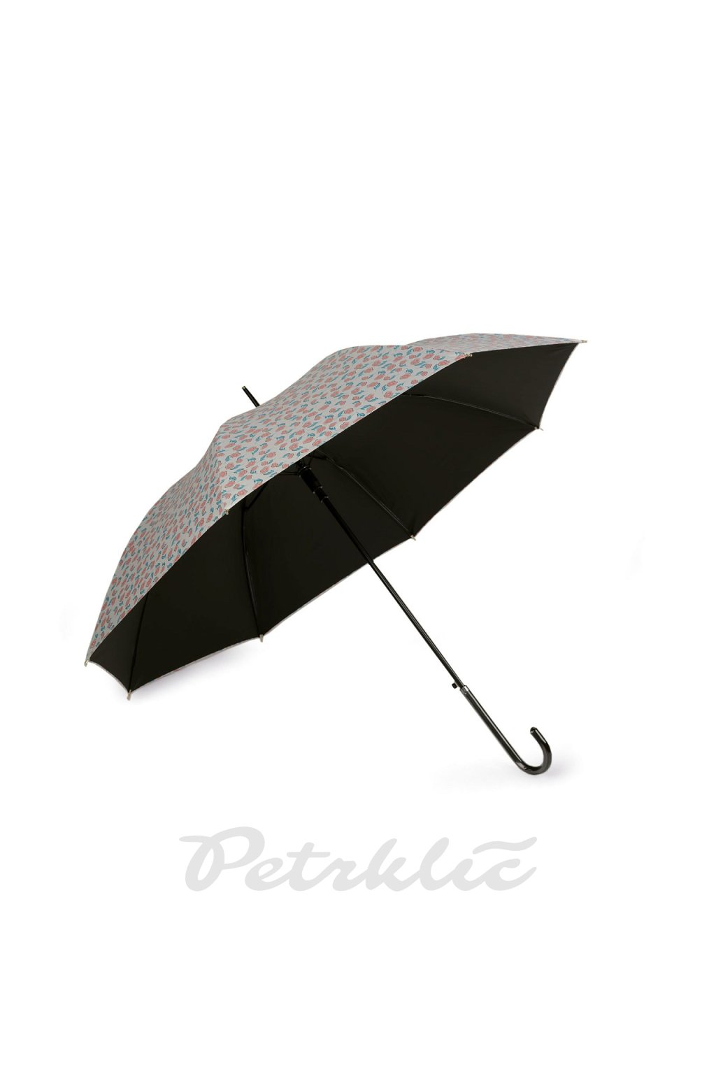 Velký dámský deštník s potiskem malých květů je vystřelovací, konstrukci má z kovového drátu a pružných lamel, které tvoří osm polí. Díky nim je velice pevný, neohne se ani za největšího nečasu. UV filtr vás ochrání před slunečním zářením. Klasická tyč je zakončená pevnou rukojetí z eko kůže. Dolní strana potahu je černá.
