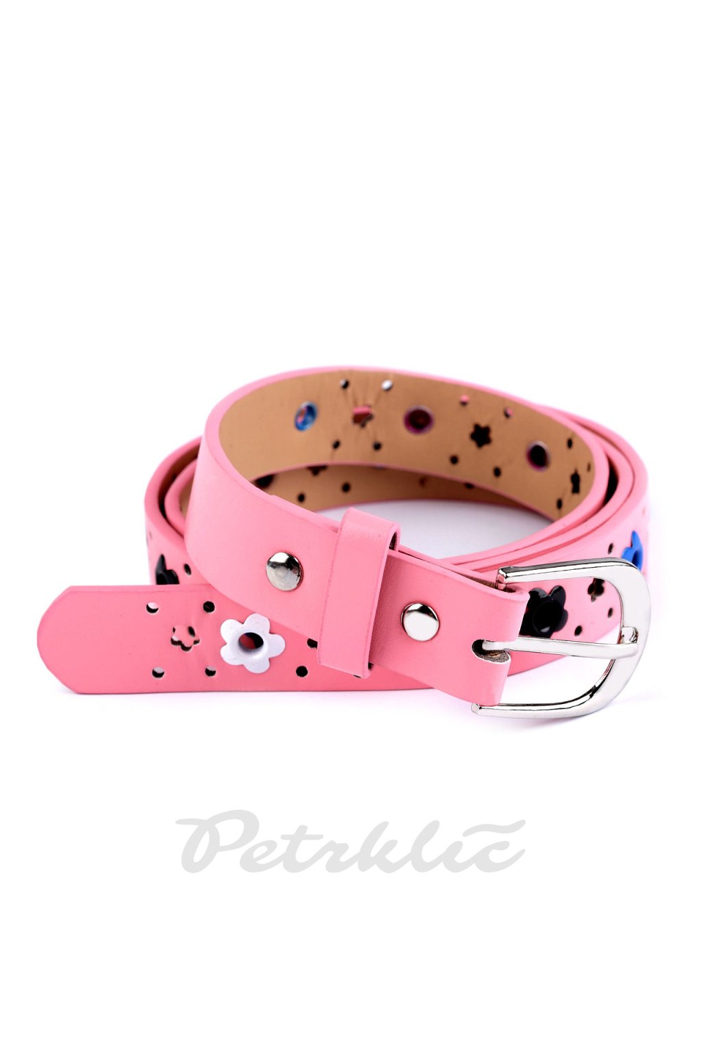 Dívčí pásek v klasickém provedení s kovovou sponou je ozdobený barevnými průchodkami ve tvaru květů a perforací. Zapíná se do kteréhokoliv kovového květu po celé délce pásku.