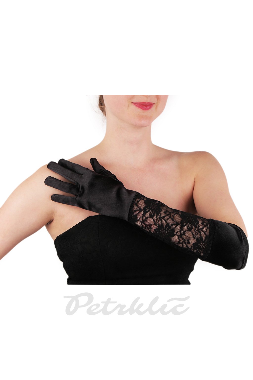Dlouhé společenské rukavice saténové s krajkou L870707