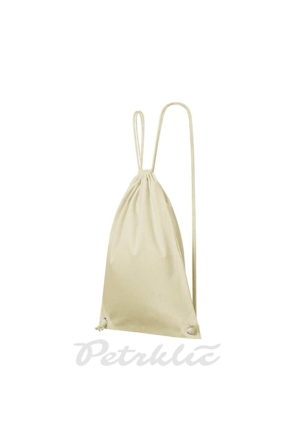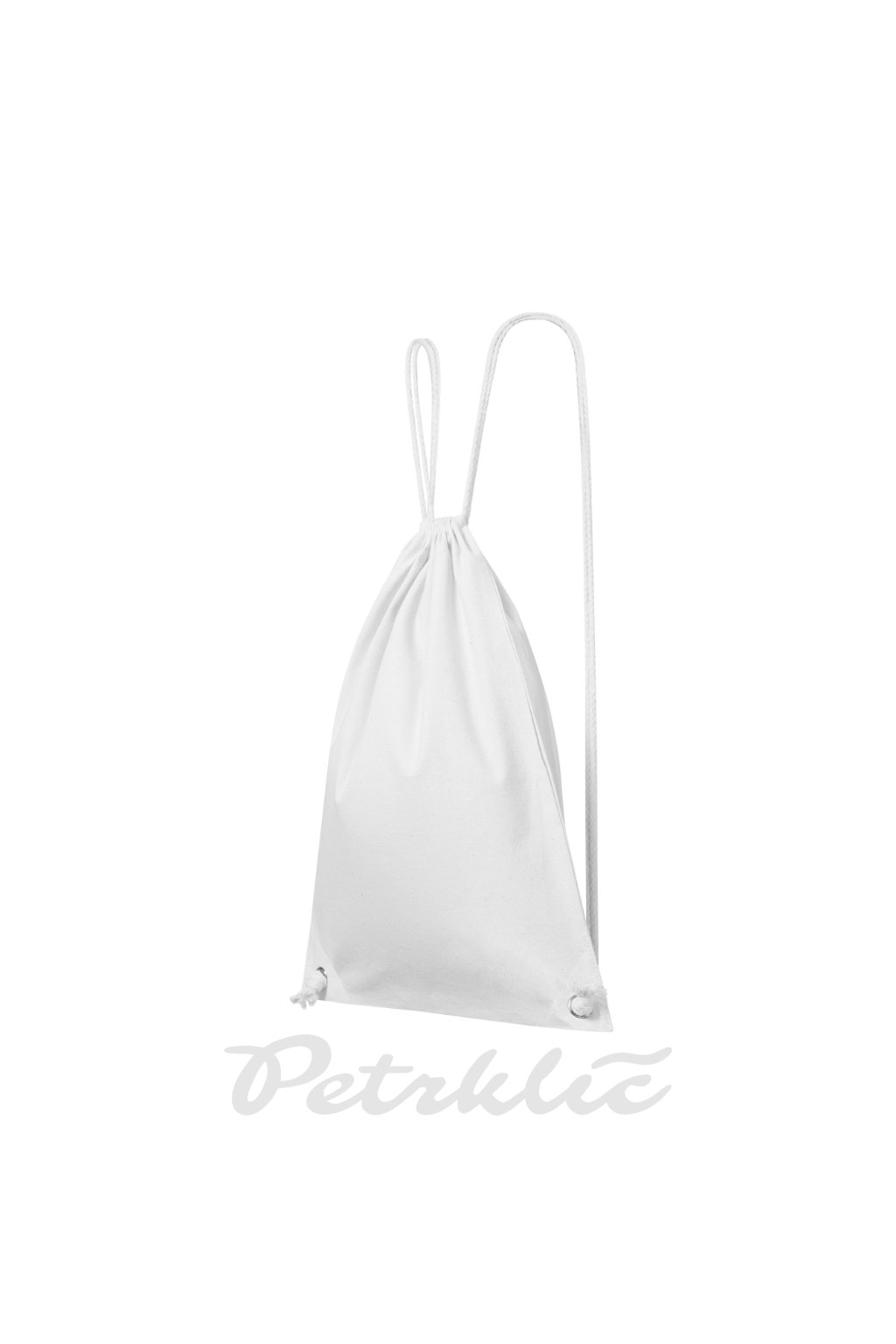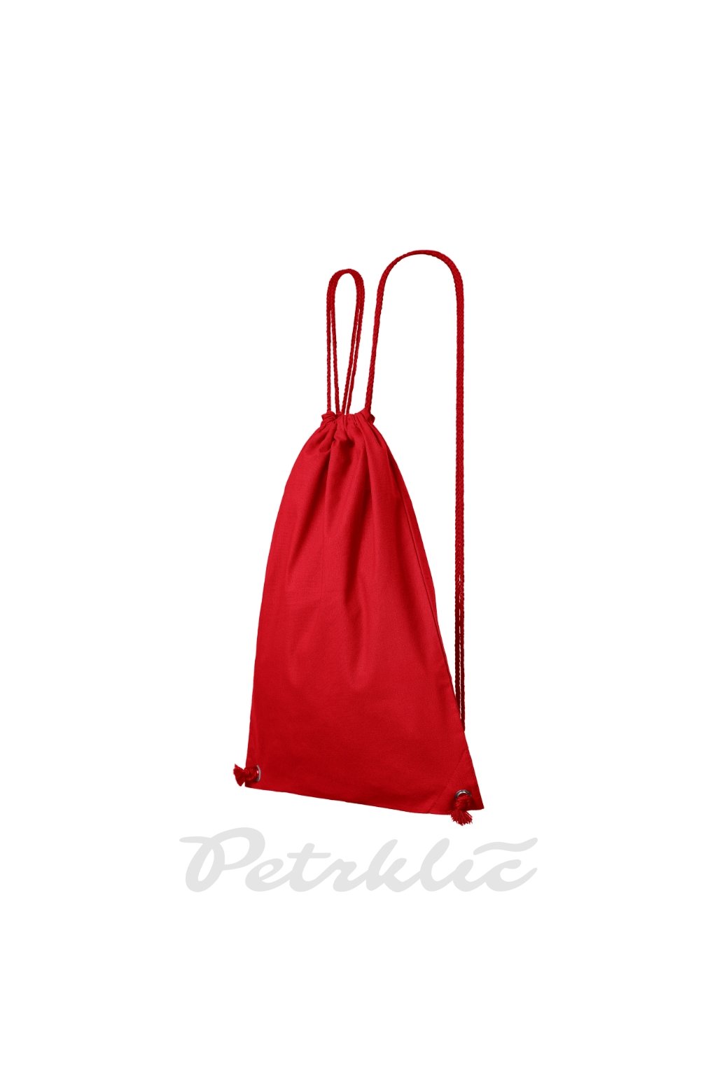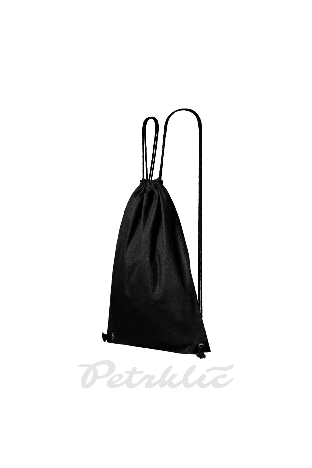 bavlněný tkaný batoh střední gramáže, zavírání na stahování, 2 bavlněné šňůrky v barvě vrchového materiálu, zpevněné dolní rohy dvojitým materiálem a kovovými kroužky, vnitřní kapsa na zip 20 x 23 cm, rozměry batohu 47 x 37 cm