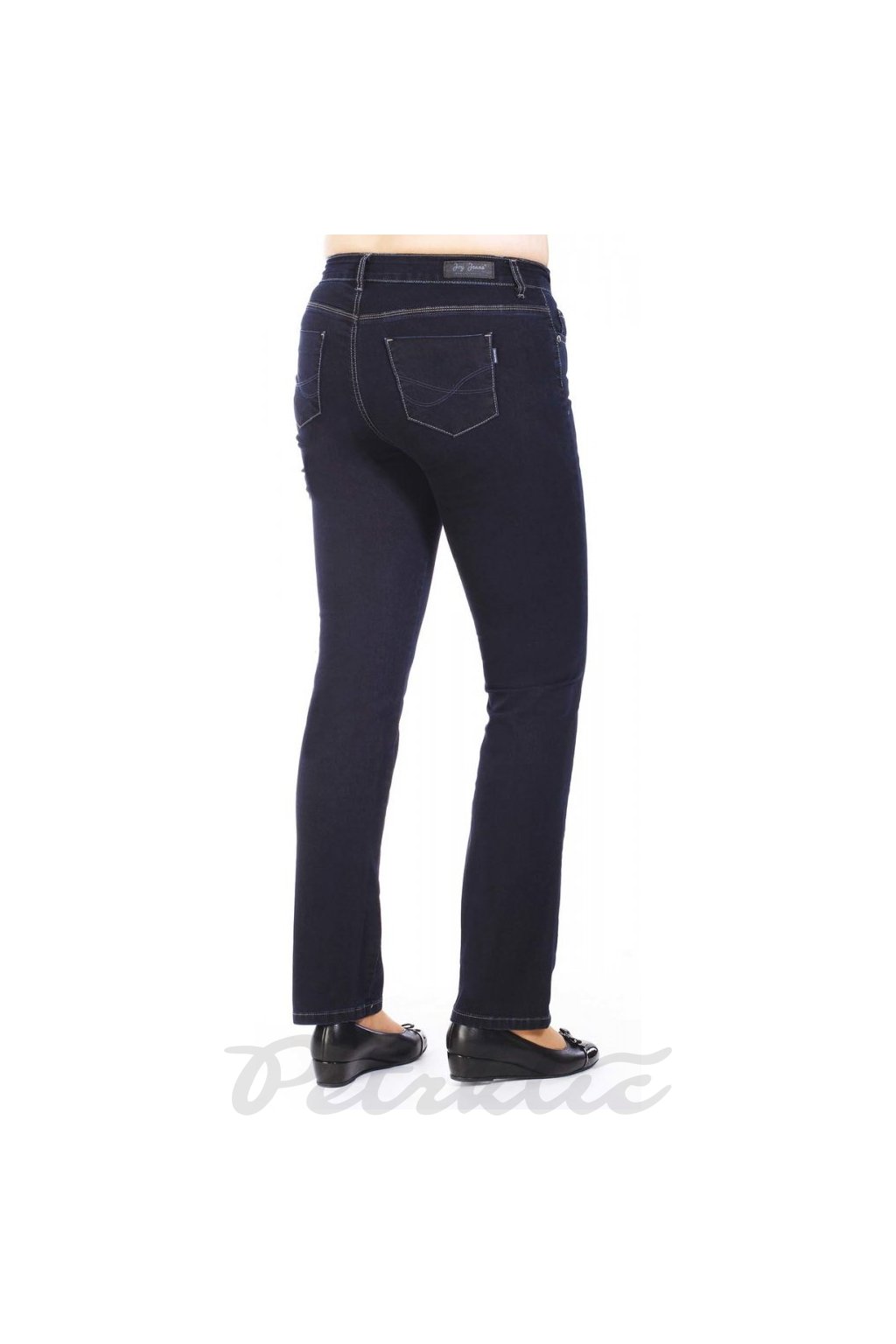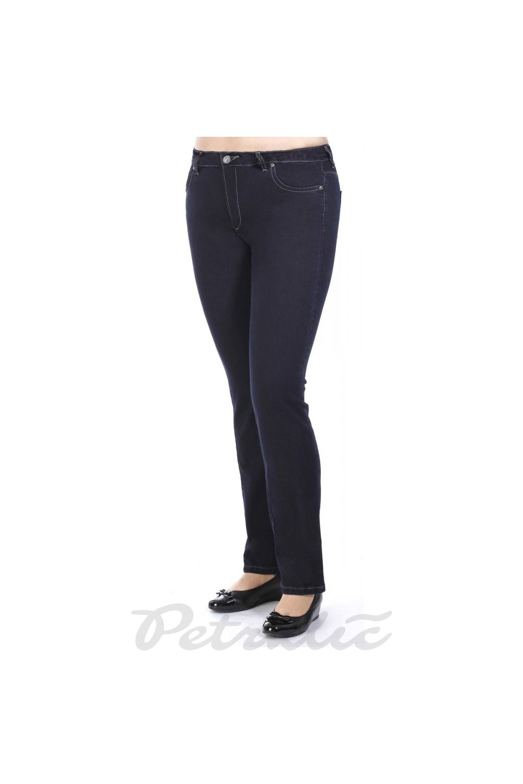 Dámské tmavě modré jeansy s vyšším sedem v perfektně padnoucím střihu s rovnými nohavicemi. Zapínají se na zip a jeden knoflík a jsou v klasickém pětikapsovém provedení. Odlehčený materiál s elastanem zaručuje příjemné nošení. Nabízíme v pěti délkách: vnitřní délka nohavice 30 - 76cm, 32 – 81cm, 34 - 86cm, 36 - 91cm, 38 - 96cm. Velikost vybírejte podle obvodu pasu a délky.