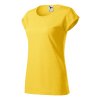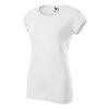 Volný střih s bočními švy, průkrčník lemován vrchovým materiálem, zpevnění ramenních švů páskou, ohrnuté rukávy zachycené ve 4 bodech šitím.