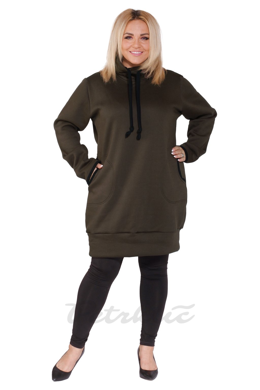 Mikinové šaty s kapucí z kvalitní hřejivé teplákoviny. Mikinové šaty jsou zakončeny lemem, který je i na rukávech. Kapuce je doplněna funkčními šňůrkami na stažení.