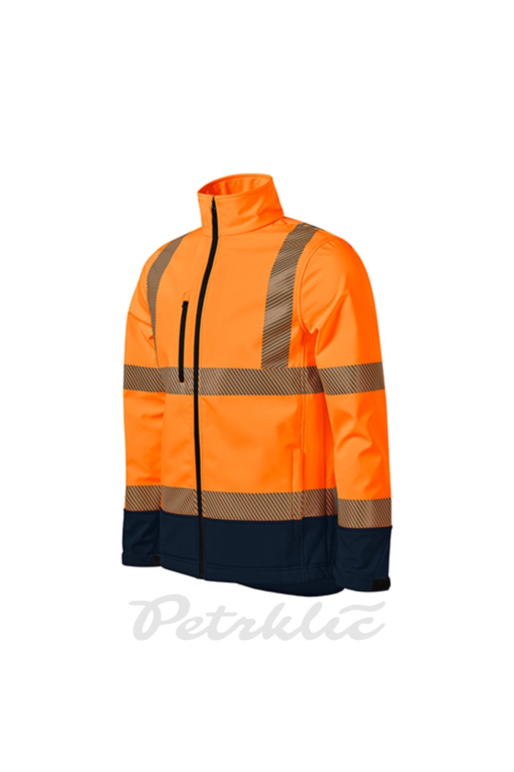 oděv s vysokou viditelností v dvoubarevném provedení, 3vrstvý softshell s membránou, voděodolný, prodyšný, fluorescenční materiál, segmentové retroreflexní pruhy , sedlo na zadním dílu, celopropínací reverzní spirálový zip s krytkou brady, lemy rukávů nastavitelné suchým zipem, lištové kapsy s reverzním spirálovým zipem, náprsní kapsa, vnitřní náprsní kapsa na zip se vstupem pro branding, tvarovaný a mírně prodloužený zadní díl , dolní lem na stažení elastickou šňůrkou, poutko na zavěšení, vnitřní fleece s antipilingovou úpravou, certifikace dle norem EN ISO 20 471 (třída 2 - M, L; třída 3 - XL - 4XL) a EN ISO 13 688