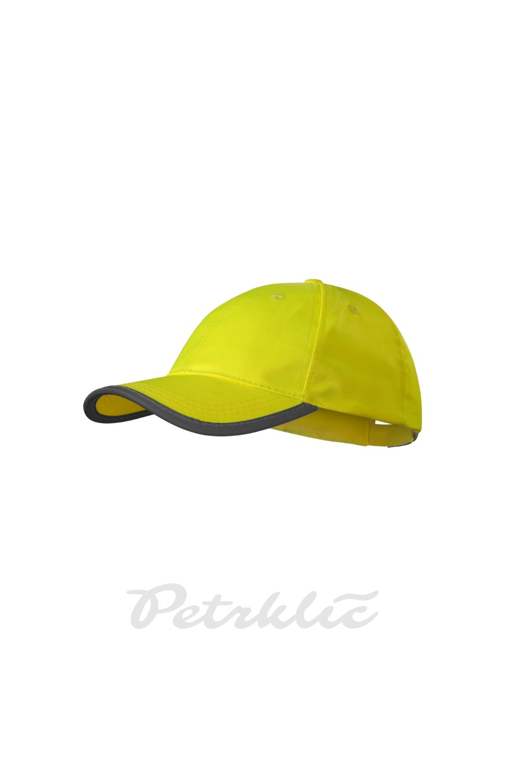 šestipanelový střih, rychleschnoucí fluorescenční materiál, retroreflexní páska na kšiltu a zapínání, vyztužené 2 přední panely, prošívaný, lehce prohnutý kšilt, obšité větrací otvory, potící páska, velikost nastavitelná suchým zipem