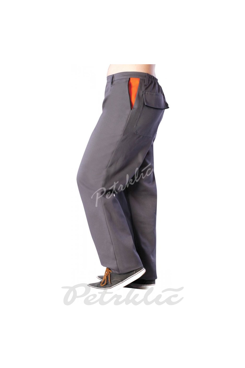 Kalhoty v tříbarevném provedení s bočními kapsami, dvěma zadními kapsami s patkou a malou přední na mobil. V pase zpracované do pásku s poutky, vzadu s gumou. Kalhoty jsou na výšku postavy 182 cm.