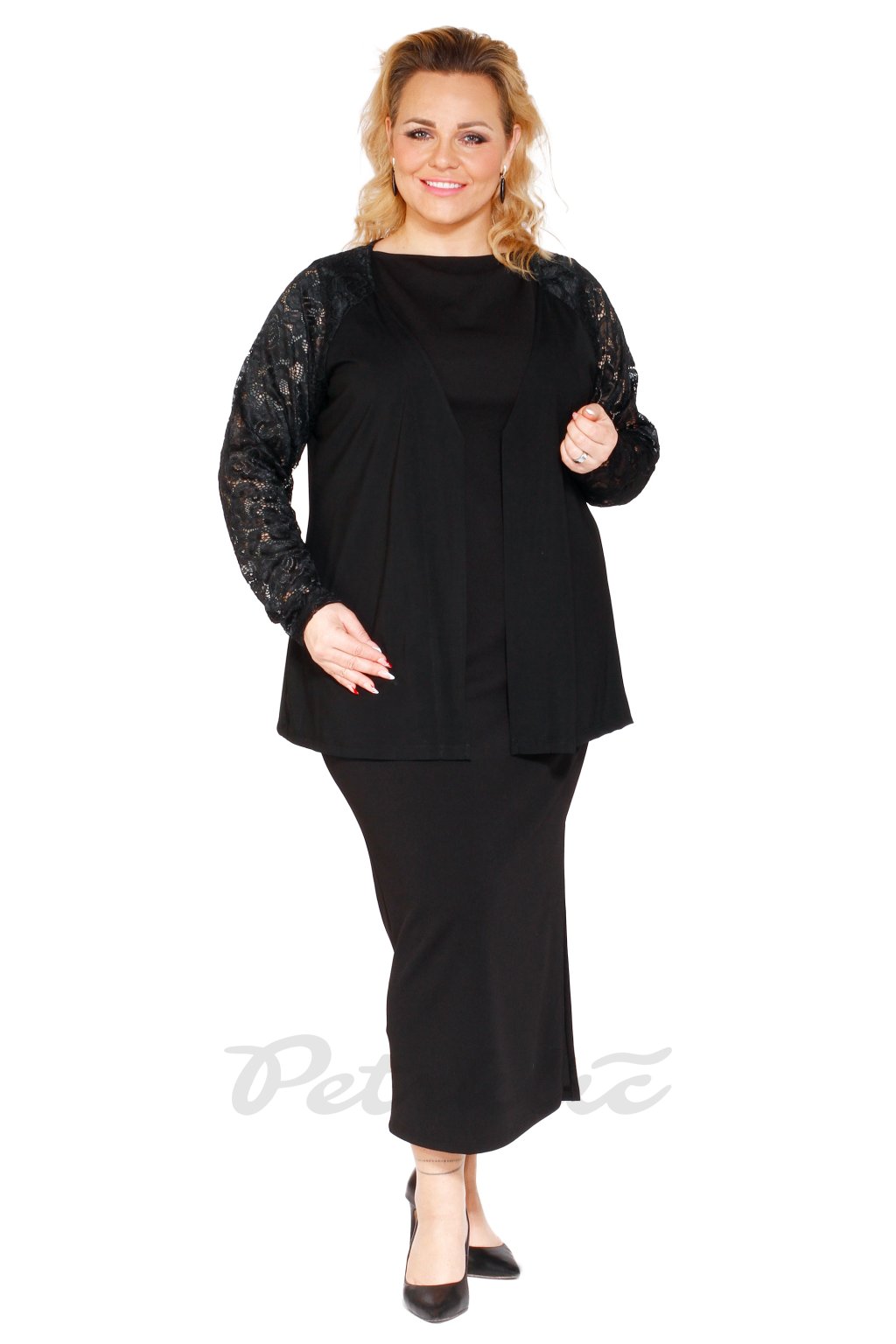Kabátek s krajkovými raglánovými rukávy bez zapínání. Délku rukávu si můžete zvolit.