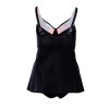 Dvoudílné plavky - tankiny s rozšířenou sukénkou a podprsenkovým dílem s kosticí a černými kalhotkami.