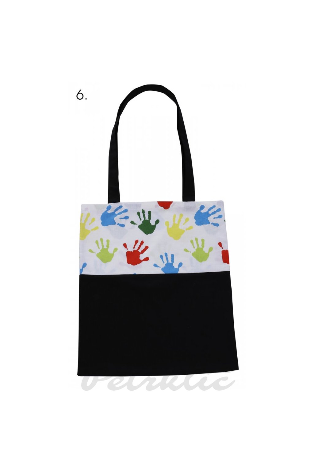 Plátěné eko-tašky jsou v dnešní době čím dál více oblíbené. Jsou ekologické a šetrné k životnímu prostředí. Taška je vyrobena z pevného plátna se vzorem v kombinaci s černou a s krátkými uchy. Je skladná, můžete ji nosit neustále v kabelce a ušetříte tak za jednorázové igelitové tašky. Využijete ji také jako stylovou kabelu nebo tašku pro děti na pomůcky do školy. Délka ucha cca 44 cm. Česká výroba.