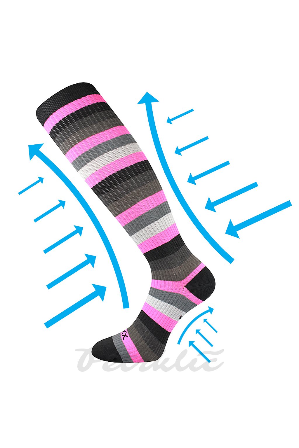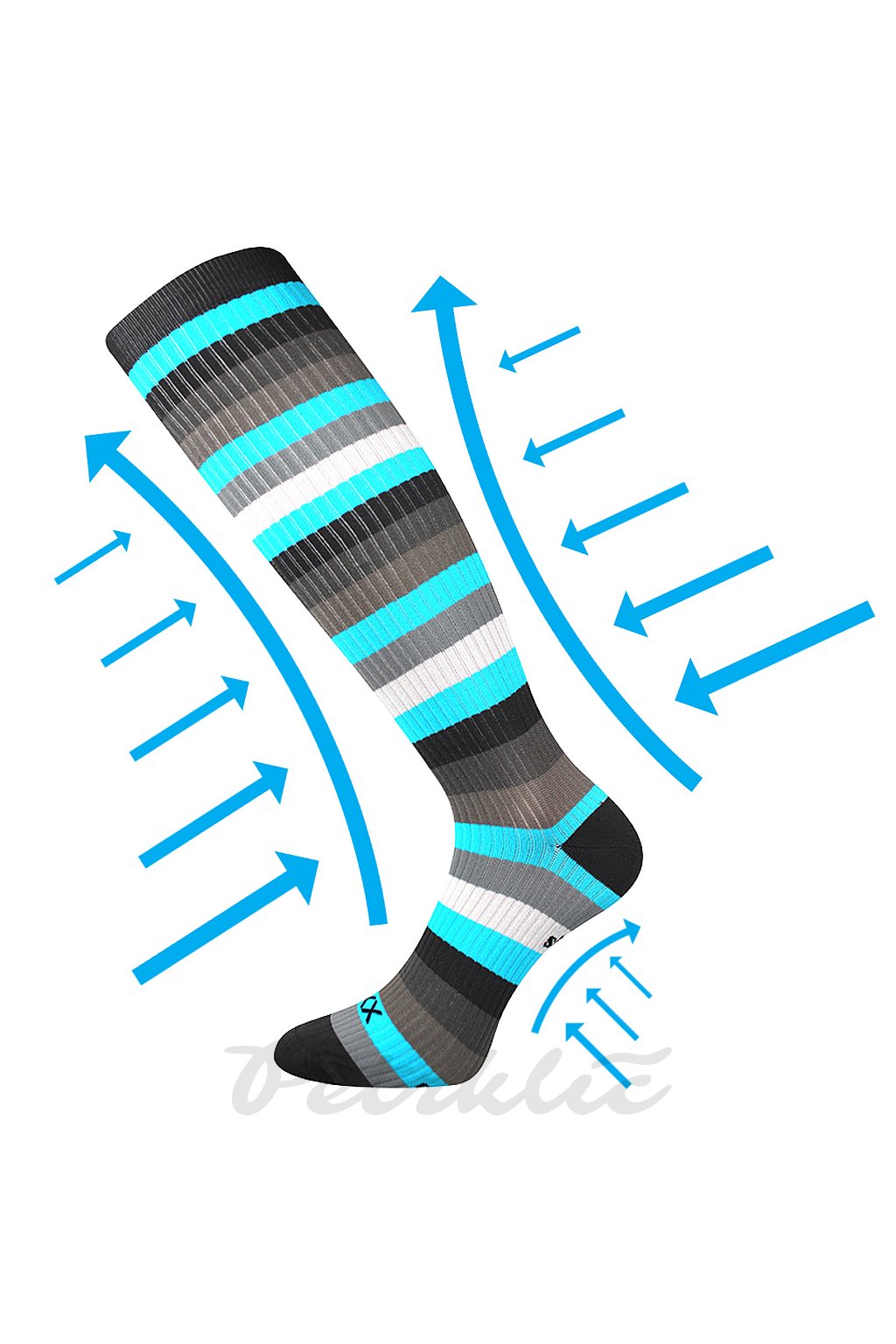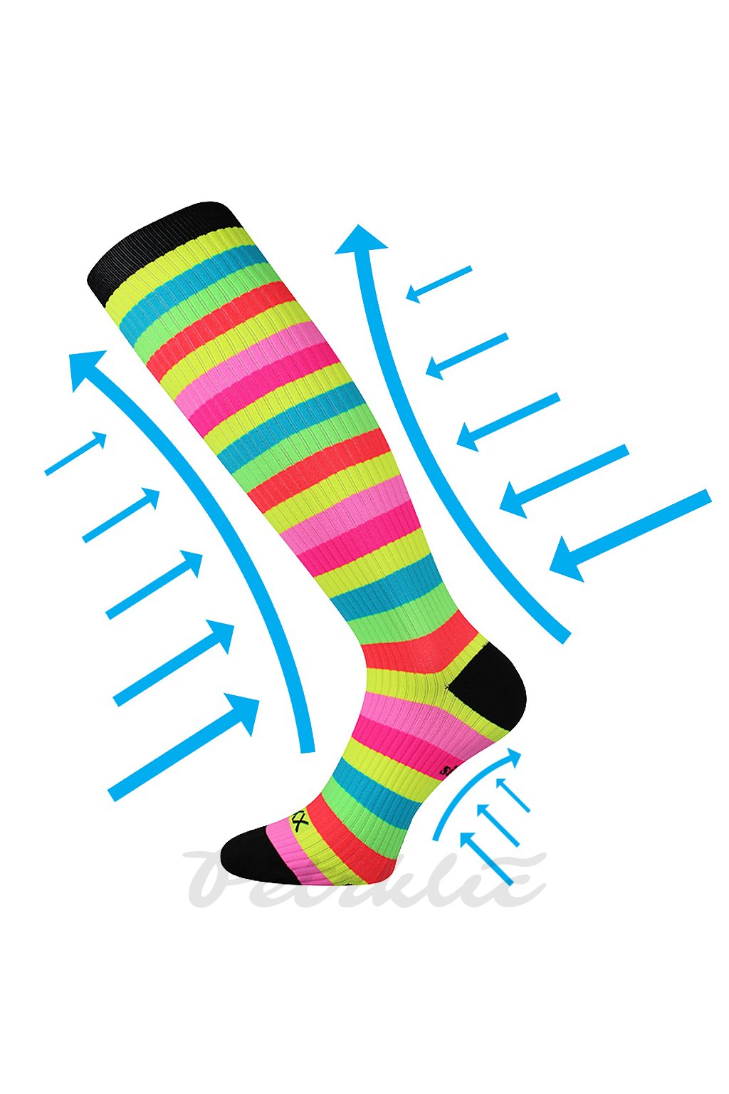 kompresivní podkolenky se speciální konstrukcí pro Vaše zdraví. Pozitivně působí na krevní oběh díky stupňovitému masážnímu tlaku. Jsou zejména vhodné tam, kde dochází k přílišnému zatížení dolních končetin. U zátěžového sportu, rychlá regenerace svalů, zvýšení průtoku krve, větší okysličení svalů. Vhodné pro dlouhodobé stání, nebo sezení v zaměstnání, dlouhodobé cestování v různých dopravních prostředcích. Prevence proti křečovým žilám