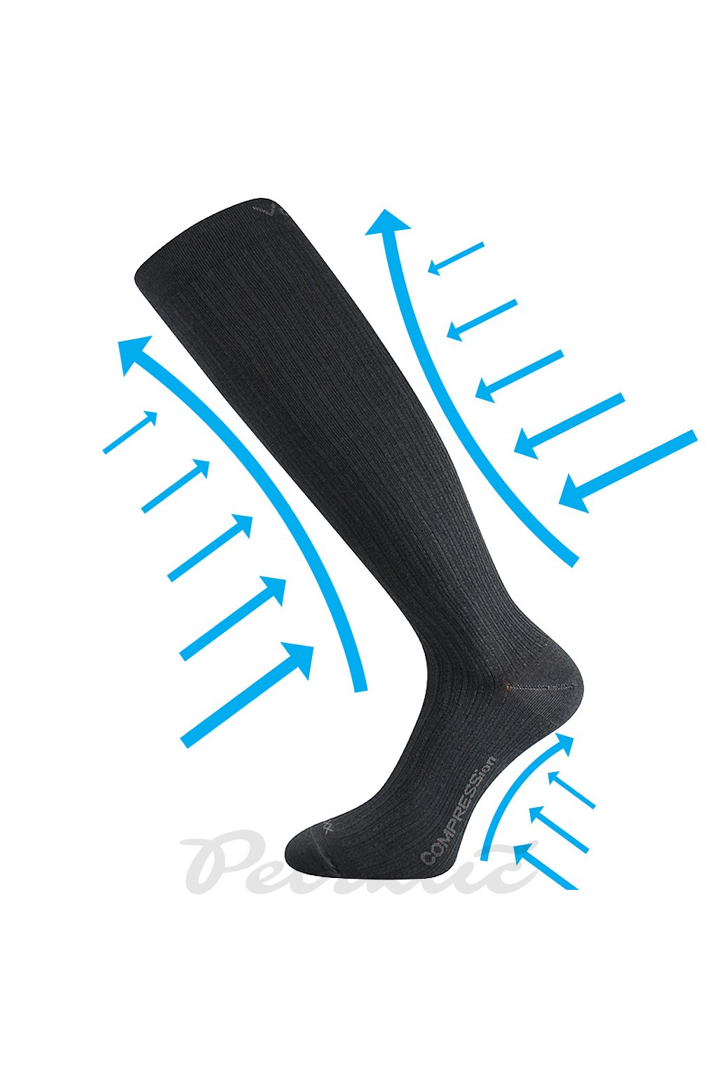 dámské-pánské kompresní podkolenky, antibakteriální ochrana materiálu silproX s ionty stříbra, maximální tepelný comfort díky merino vlně a polyamidu Cordura, řetízkovaná špice, 200 jehlový úplet, teplotní třída: B-C