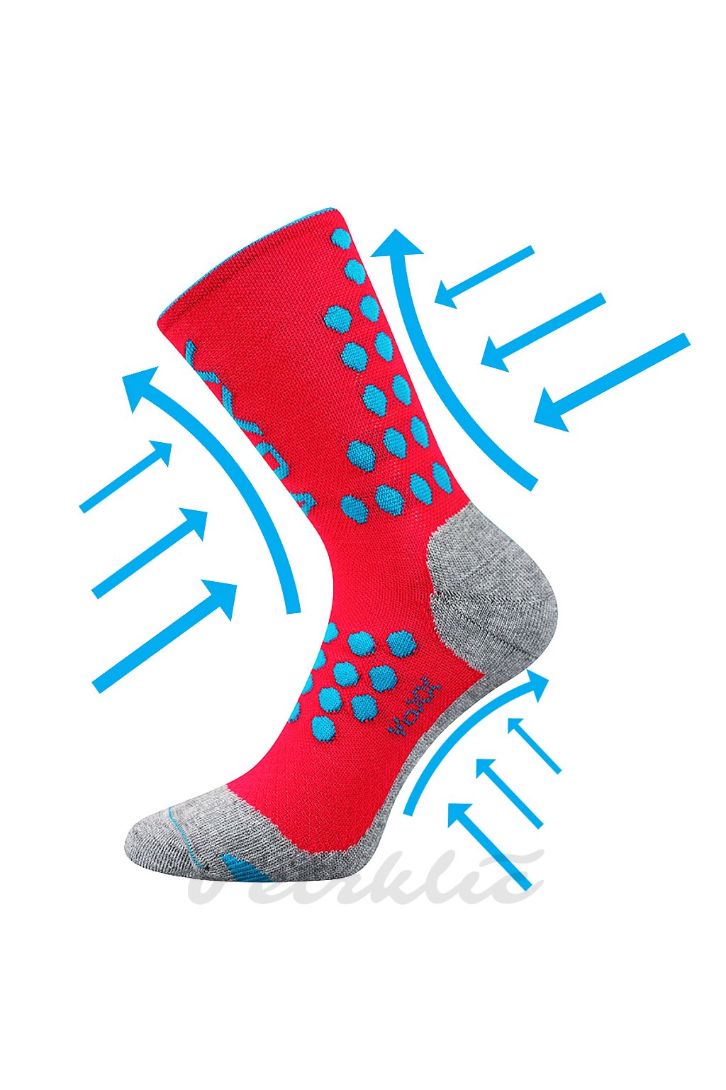 dámské-pánské sportovní podkolenky s vyvzorovanou patou a řetízkovanou špicí, speciální konstrukce zamezuje přetáčení v botě, anatomicky tvarované polstrované zóny brání vzniku otlaků a puchýřů, kompresní, napomáhají pevnějšímu držení a vyšší stabilitě kotníku, zapletením materiálu silproX s ionty stříbra zajišťuje antibakteriální ochrana a jemné polstrování materiálem DRYTEX zajistí maximální komfort a odvod potu při vysoké sportovní zátěži, teplotní třída: A