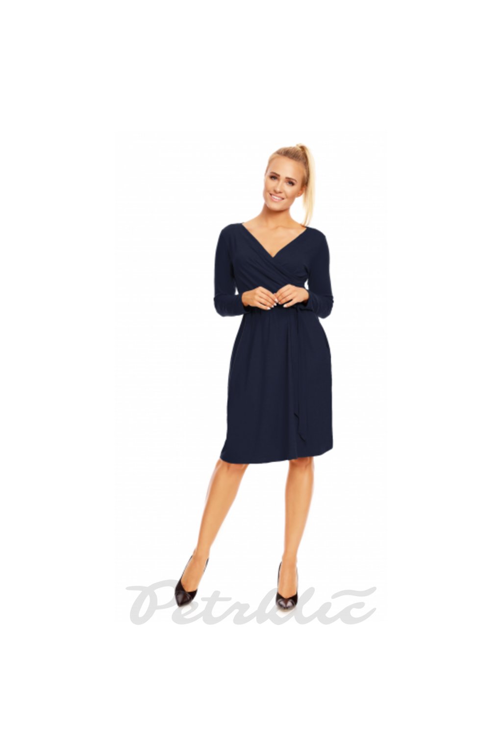 Elegantní šaty zavinovacího vzhledu s vázáním v pase. Příjemný materiál. Pokud máte raději volnější oděv, volte větší velikost.