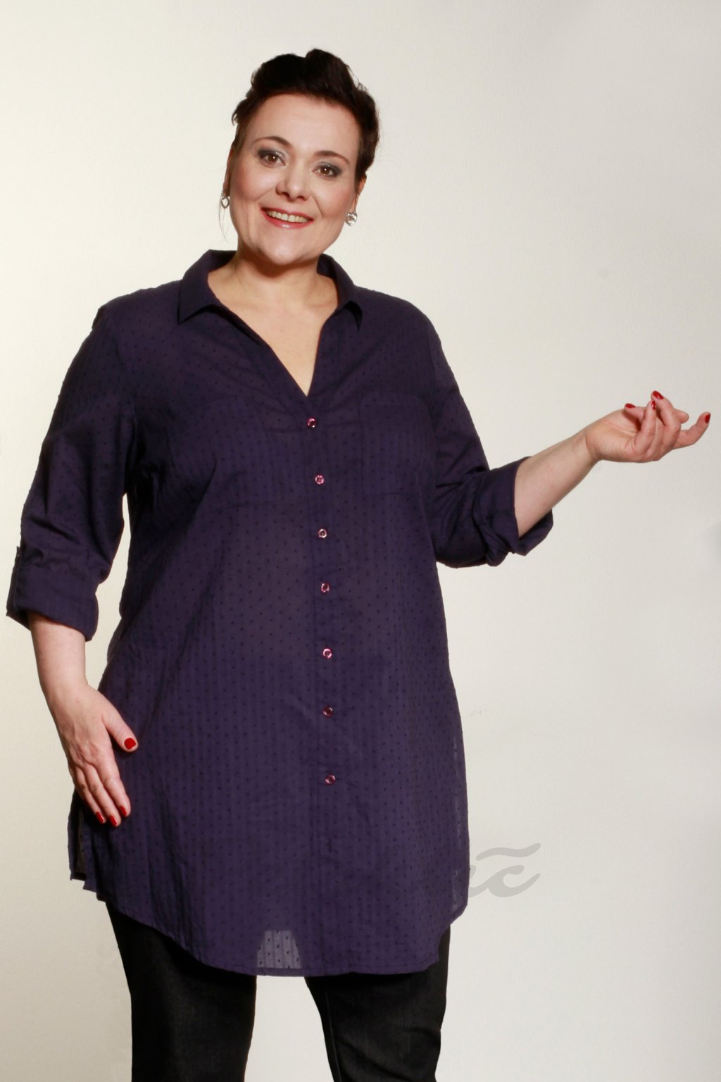 Dlouhá košile s vázačkou připevněnou na bocích amožností uvazu dopředu nebo dozadu, dle Vaší volby. Spodní lem ukončený do kulata. Zapínaní na knoflíky. Rukáv dlouhý s možností ohrnutí a připevnění na knoflík. S prsními záševky. Na prsou kapsy. Na bocích rozparky.