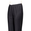 Lehké látkové elegantní kalhoty rovného střihu. Pas do gumy, v levém bočním švu je krytý zip a poutko s knoflíkem.