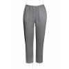 Lehké, vycházkové kalhoty rovného střihu v pase do širšího pohodlného průvleku s gumou. V bočním švu je všitý tenký zip zakončený poutkem s knoflíkem.