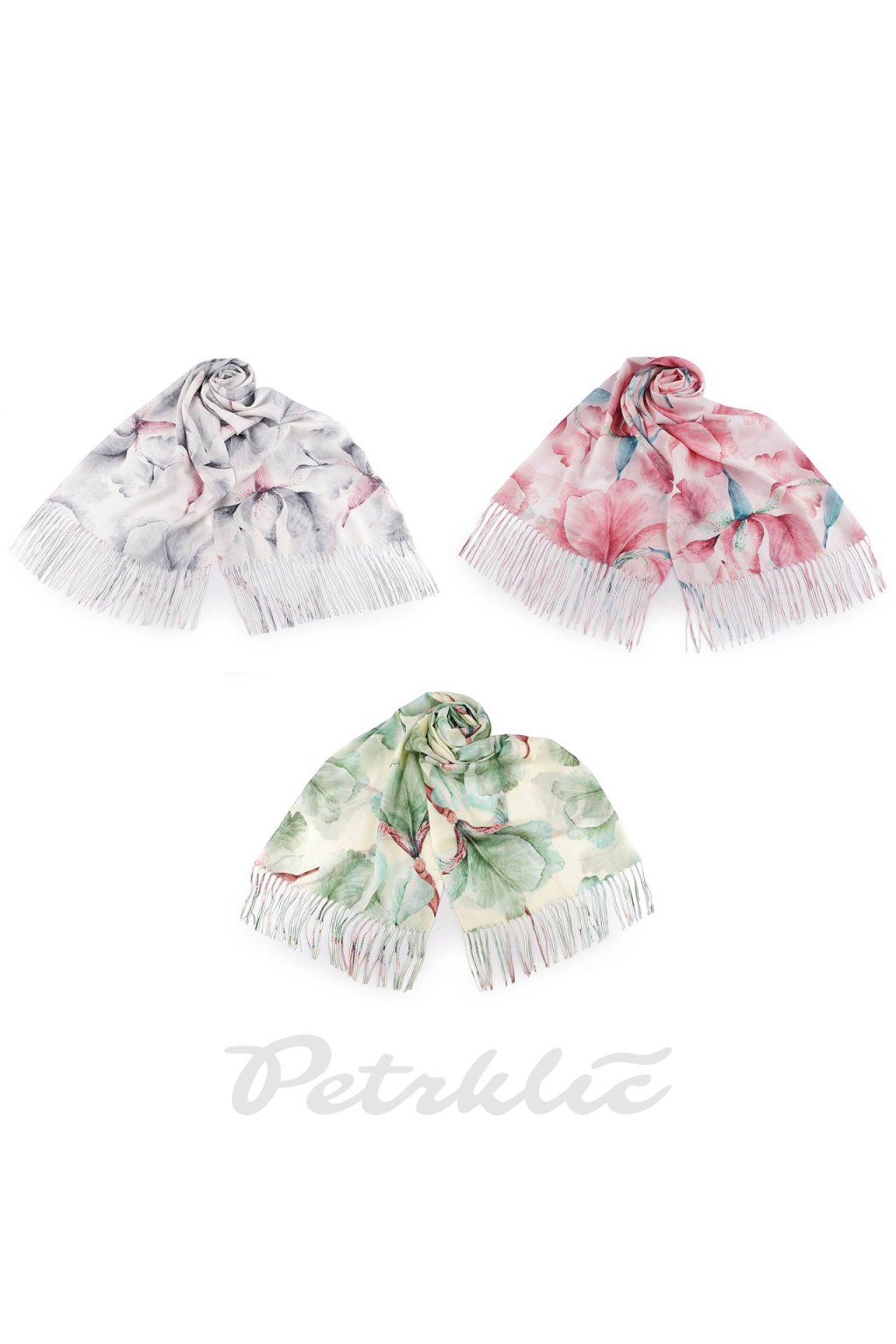 Letní šátek / šála s třásněmi velké květy 70x180 cm L620076