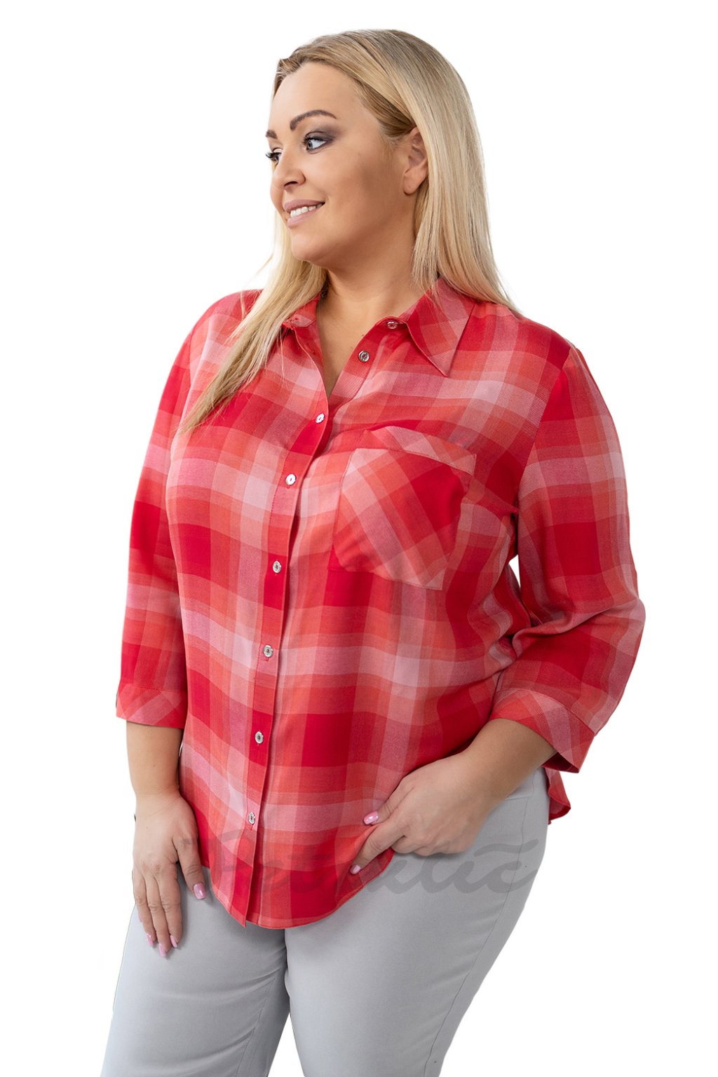 Korálová košile káro 3/4 rukávy lze zajistit na krátké M24811