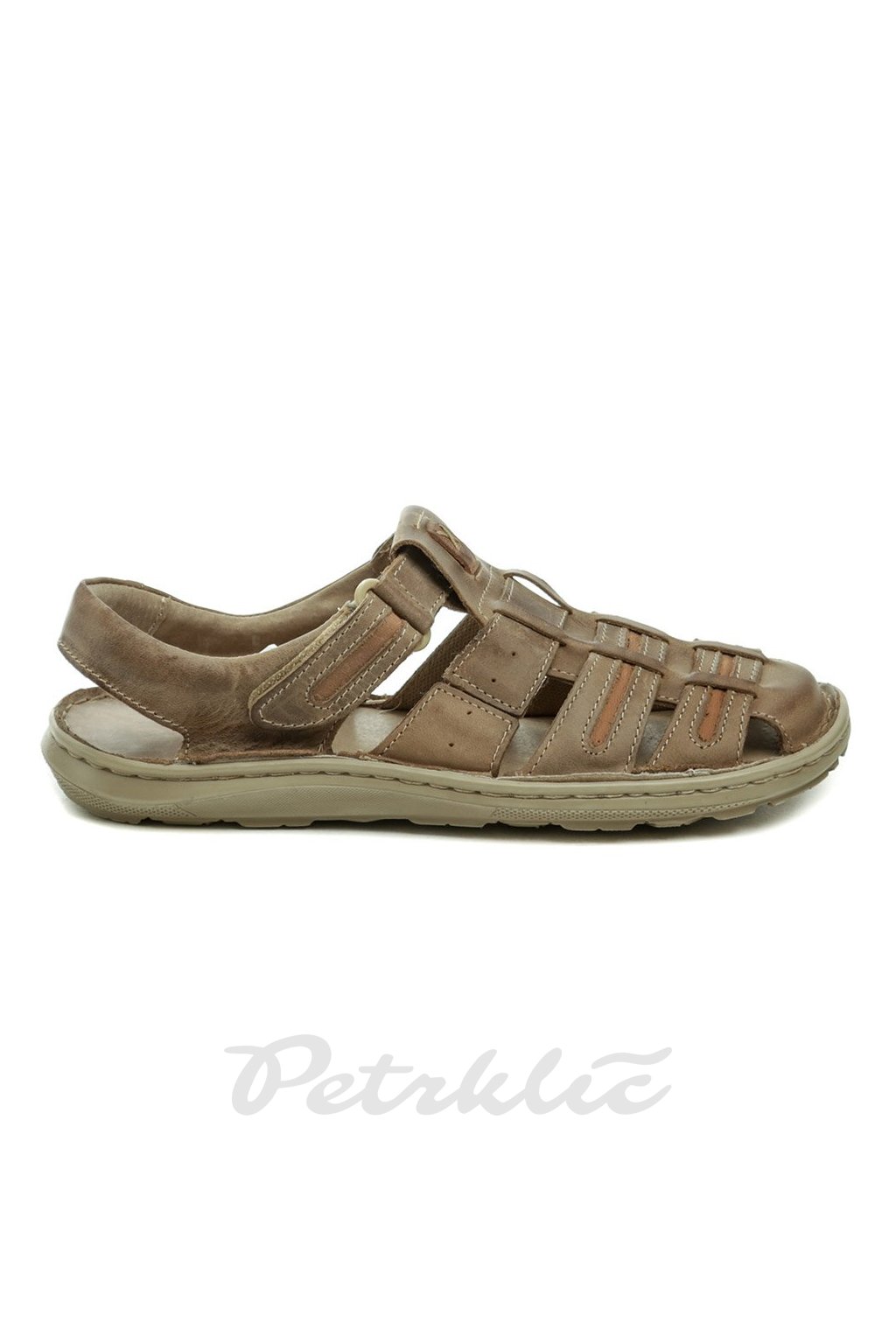 Pánská letní vycházková obuv typu sandály s plnou špičkou se zapínáním na pásek se suchým zipem.