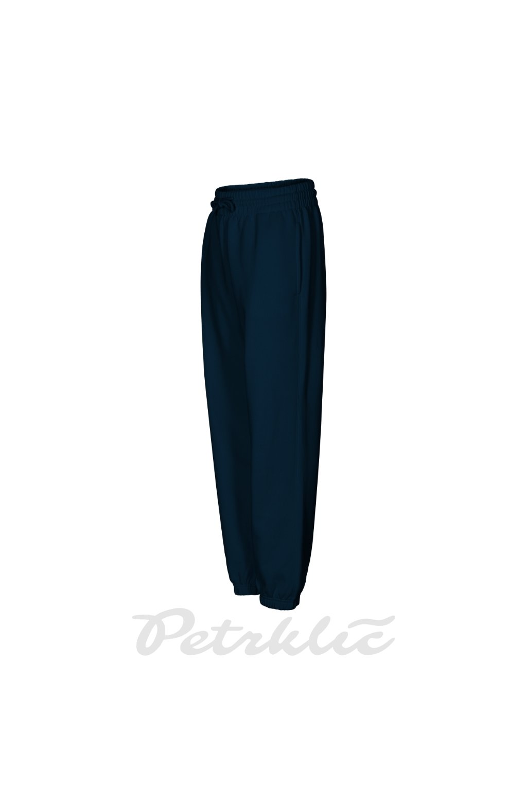 bez etikety - připraveno na rebranding, volnější střih nohavic, neutrální velikostní štítek , pasový límec s pruženkou, na stažení šňůrkou, lištové kapsy v bočních švech, dolní lem stažený pruženkou, vnitřní strana počesaná