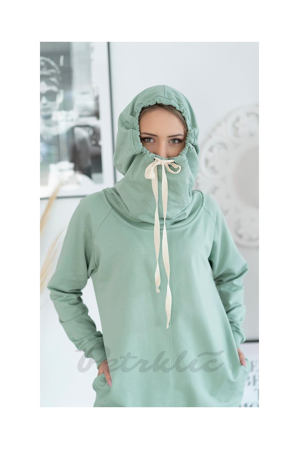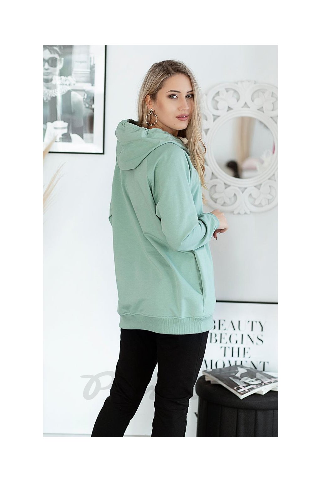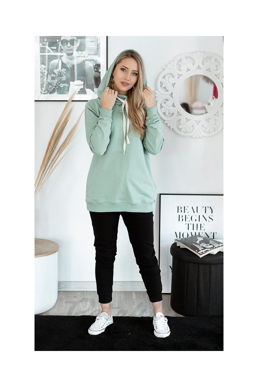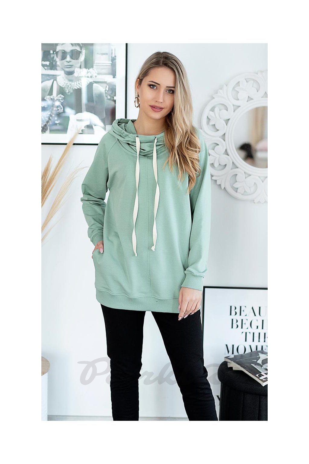 Elegantní bavlněná mikina s dlouhým rukávem a kapucí. Po stranách jsou všité kapsy. Díky volnějšímu střihu zakryjete nedokonalosti postavy. Máte-li raději volnější oděv, kupte si o číslo větší.