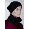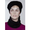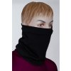 Nákrčník z dvojité černé teplákoviny. Výška nákrčníku je dostatečná pro použití jako rouška (lze dobře natáhnout až na nos). Ze stejného materiálu také čepice.