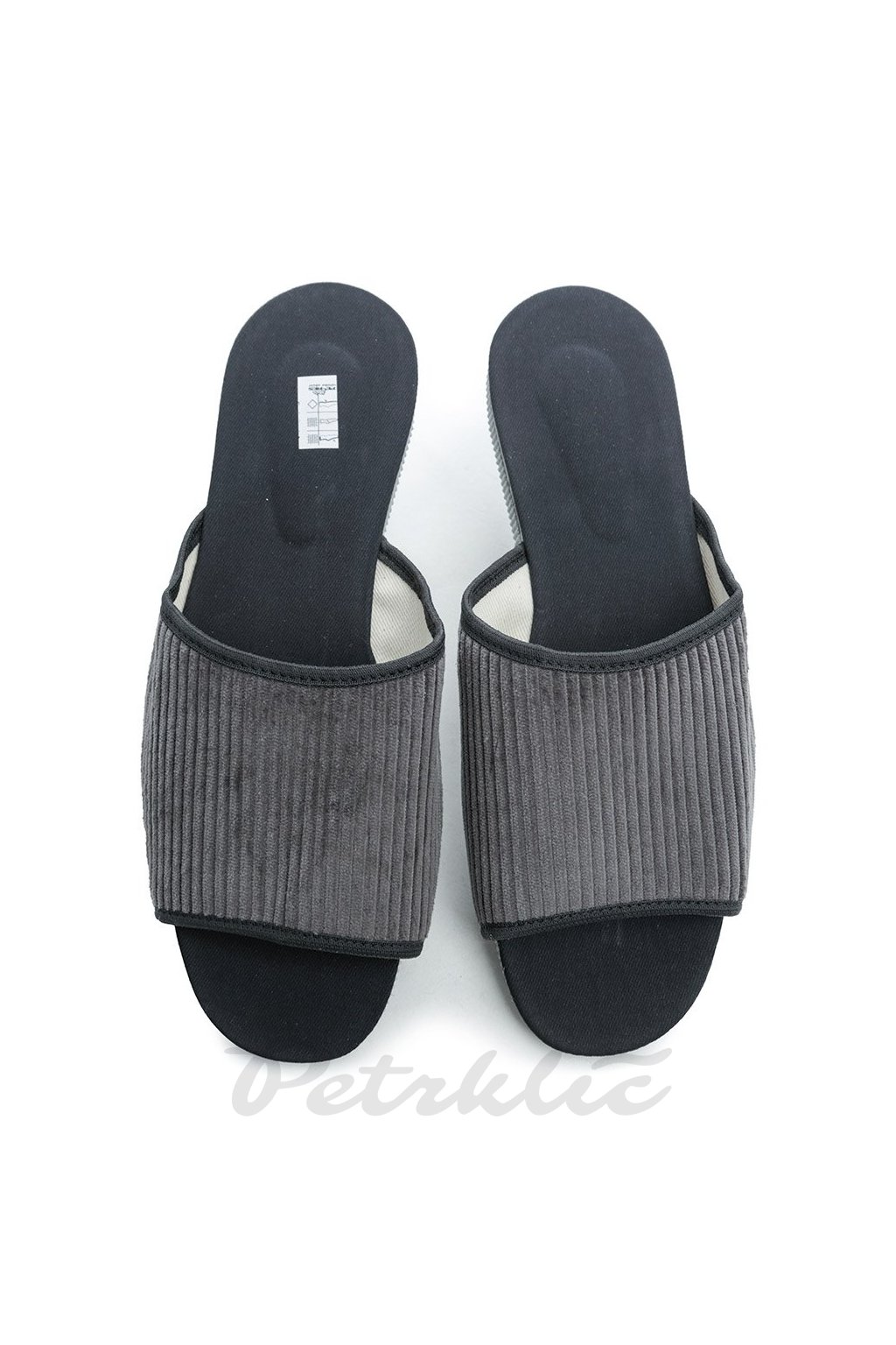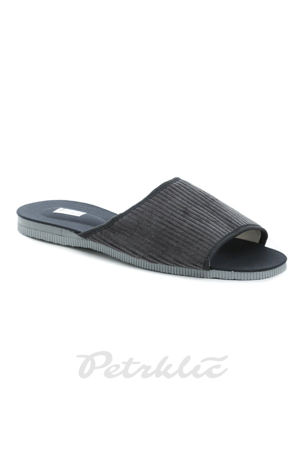Pánská celoroční domácí přezůvková obuv.  Kvalitní provedení této nazouvací papuče od českého výrobce s otevřenou špicí. V patní části je v došlapu měkký polštářek, který tlumí nárazy při chůzi.  Váha jednoho páru: 248 g Pánské domácí papuče.