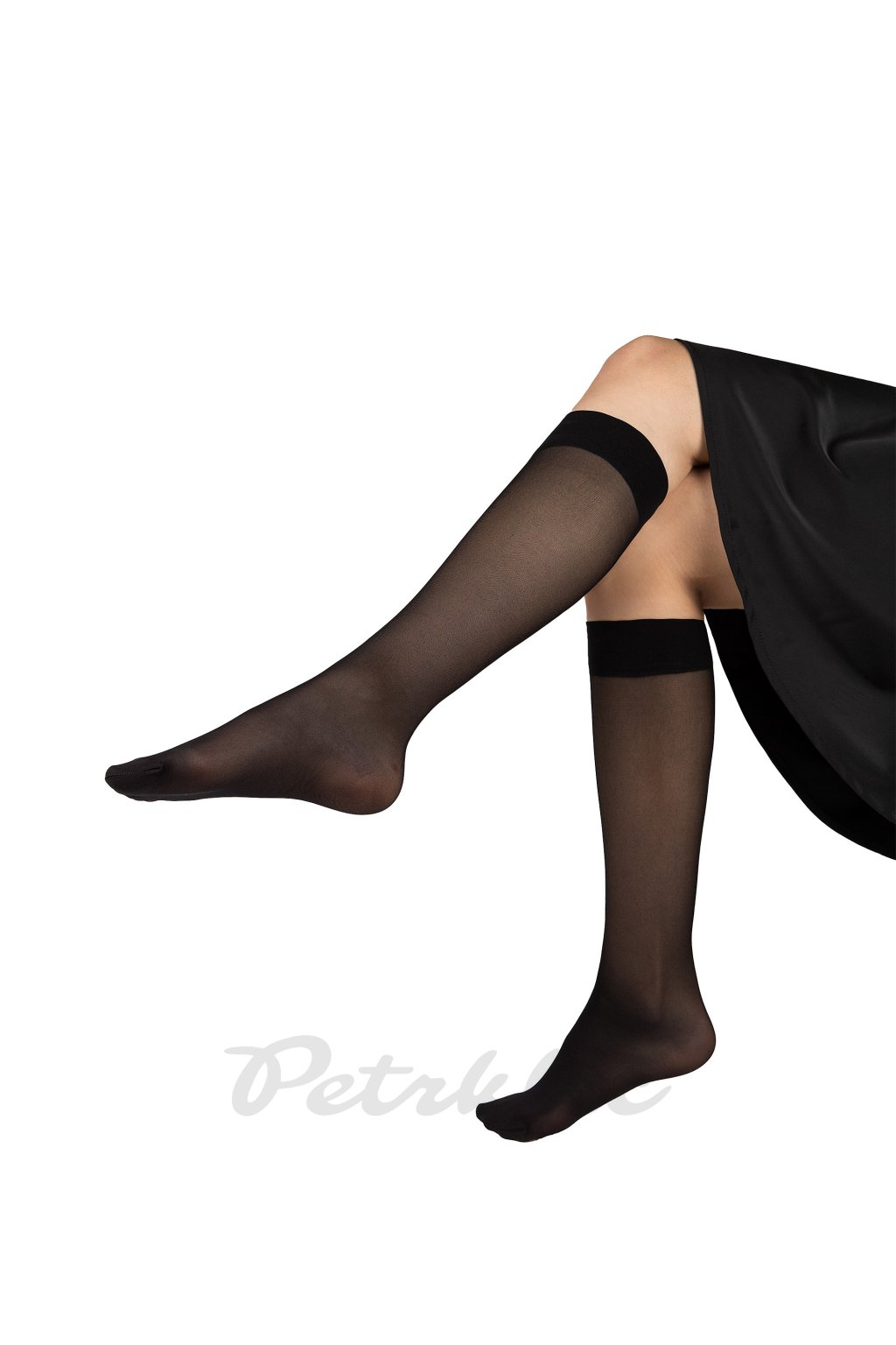 dámské podkolenky s velmi jemným svěrem lemu, vyrobené z kvalitního úpletu, parfémované, bez paty se zesílenou špicí, balené v extra sáčku v krabičce, 2 páry, 17 DEN