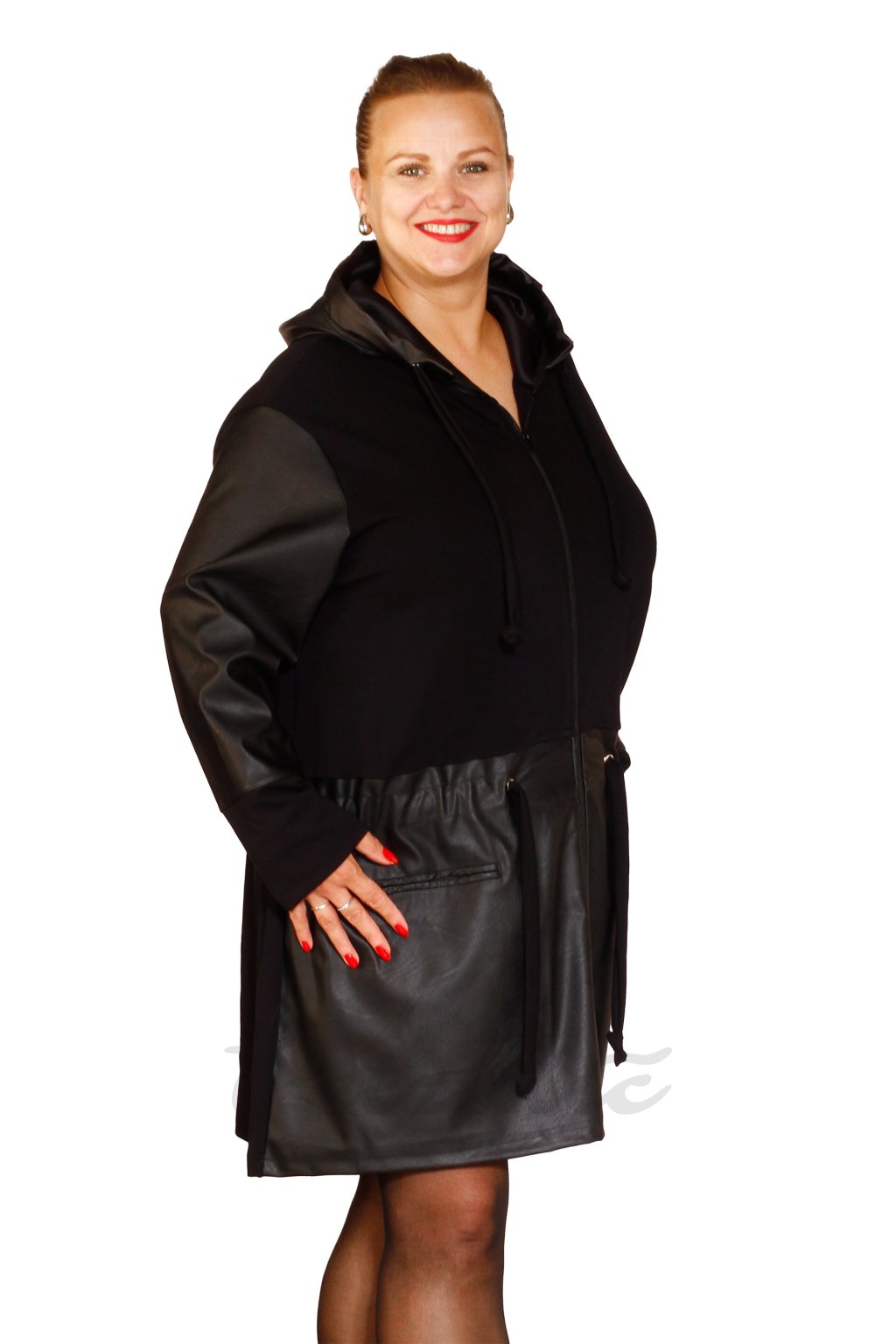 Podzimní a jarní sportovně elegantní bunda na zip je kombinací dvou materiálů kvalitního silnějšího polyesteru a jemné textilní kůže. Kapuce i pas je na utažení. Bunda je nepodšitá.