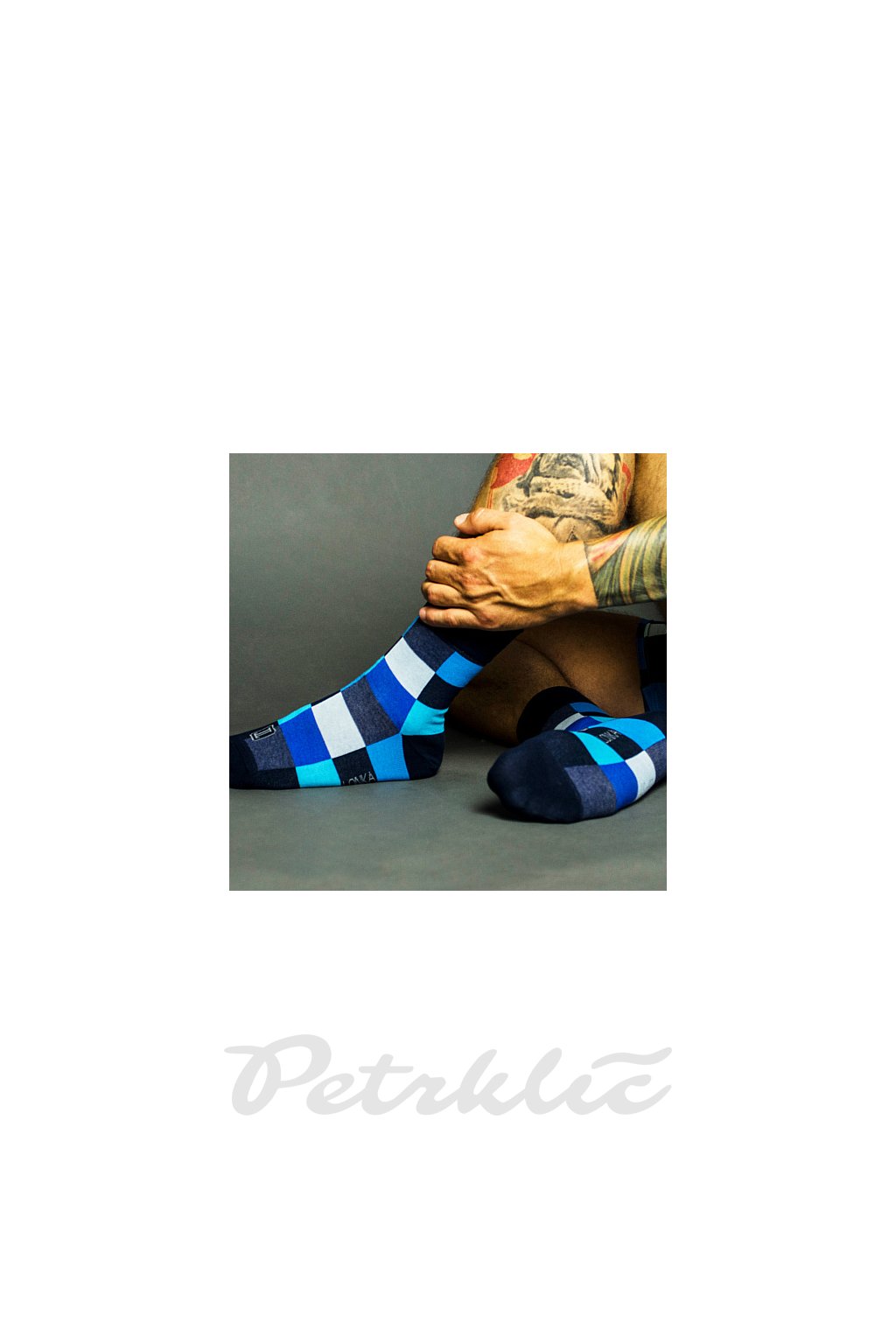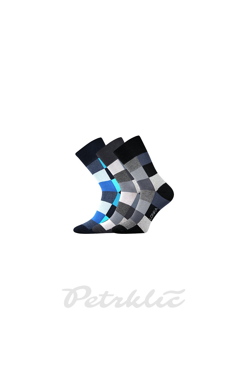 mix B "trendy" ponožek vzor: KOSTKA, barva: tmavě modrá, tmavě šedá, černá