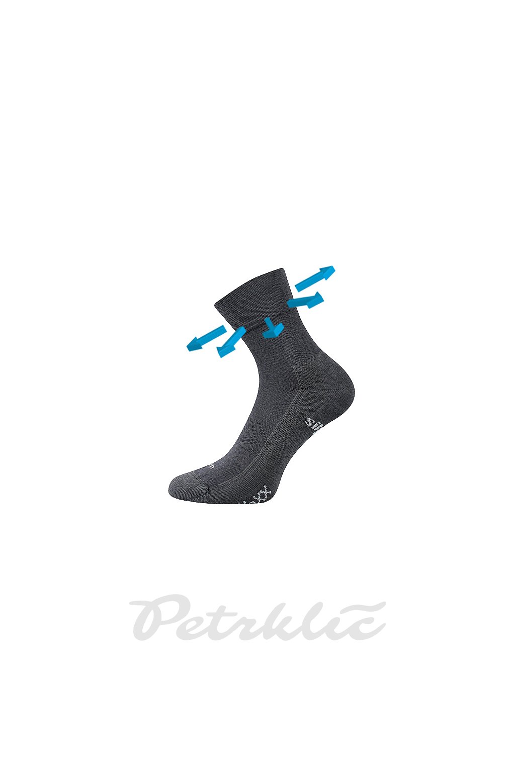 dámské-pánské sportovní ponožky, extra vyztužené chodidlo proti opotřebení, zesílené froté chodidlo, řetízkovaná špice, speciální jemný nestahující lem, přirozená antibakteriální ochrana v materiálu bambus a antibakteriální ochrana ionty stříbra v materiálu silprox, teplotní třída: B