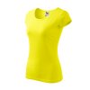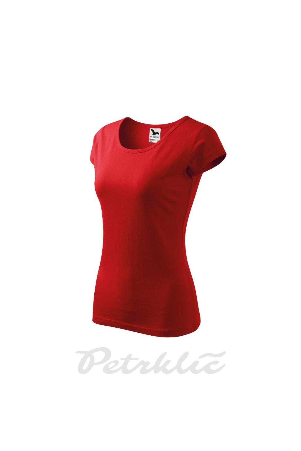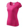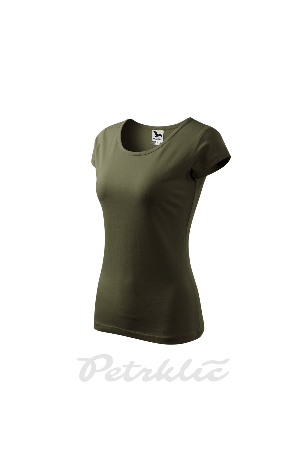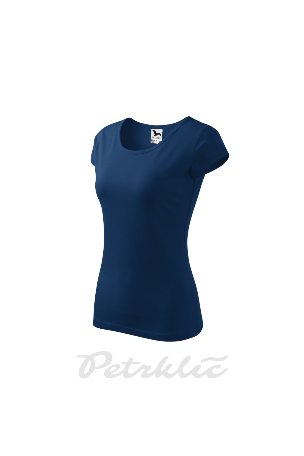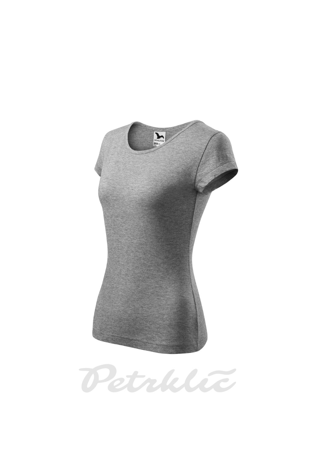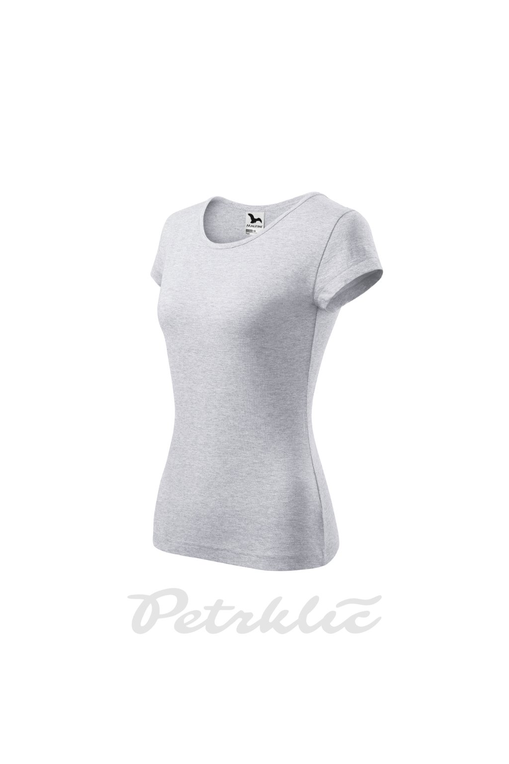 Lehce vypasovaný střih s bočními švy, průkrčník lemován vrchovým materiálem, zpevnění ramenních švů páskou, rukávy kratší délky, silikonová úprava.