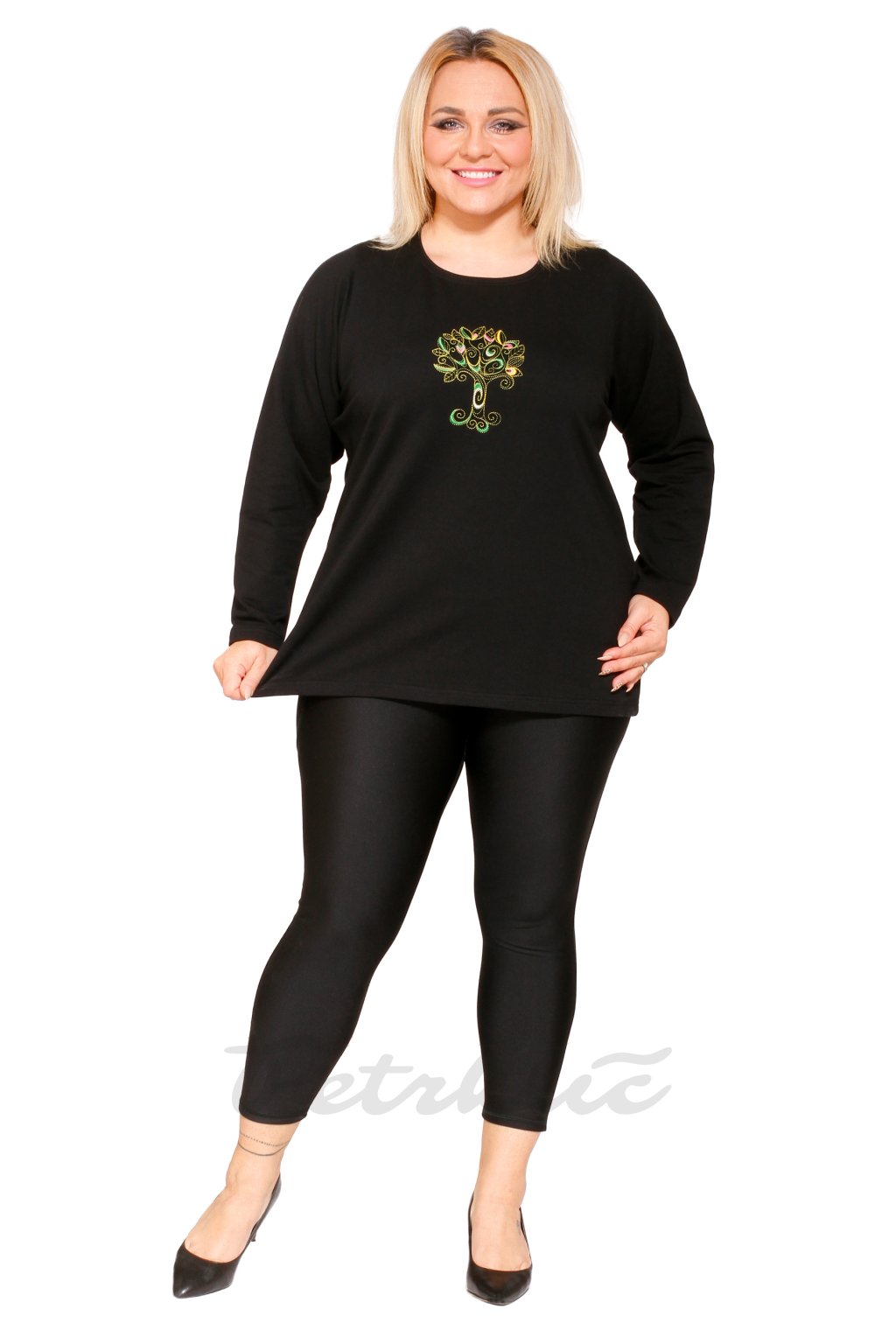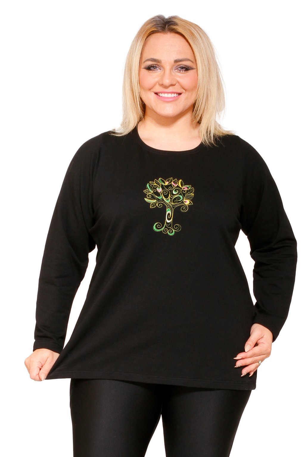 Rovná halenka bavlněný úplet Mája strom života - délka 60, 70 cm