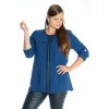 Halenka z příjemného krešového materiálu, má rovný střih s prodlouženým zadním dílem a bočními rozparky. Přední díl zdobí hlubší odšíté sámky a středová léga s našitou krajkovou stuhou. Rukávy jsou 3/4, stažené patkou.
