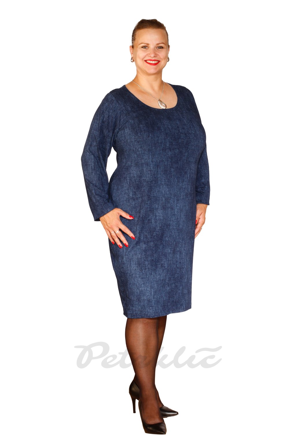 Rovné šaty Dagmar podzim tm. modrý úplet viskóza elastan