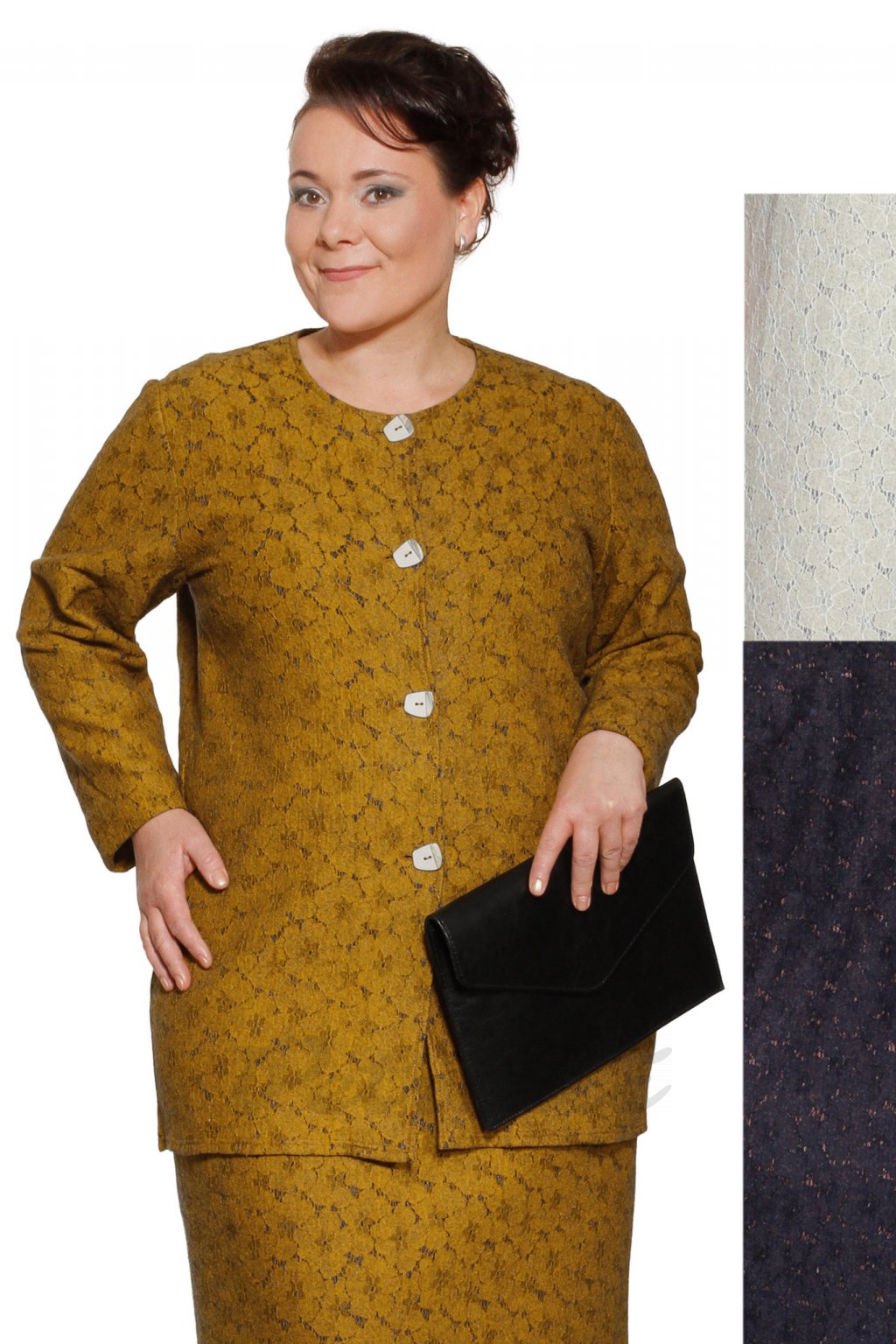 Lze využít i jako kabátek. Svetr zdobí originální knoflíky navržené pro tento svetr.