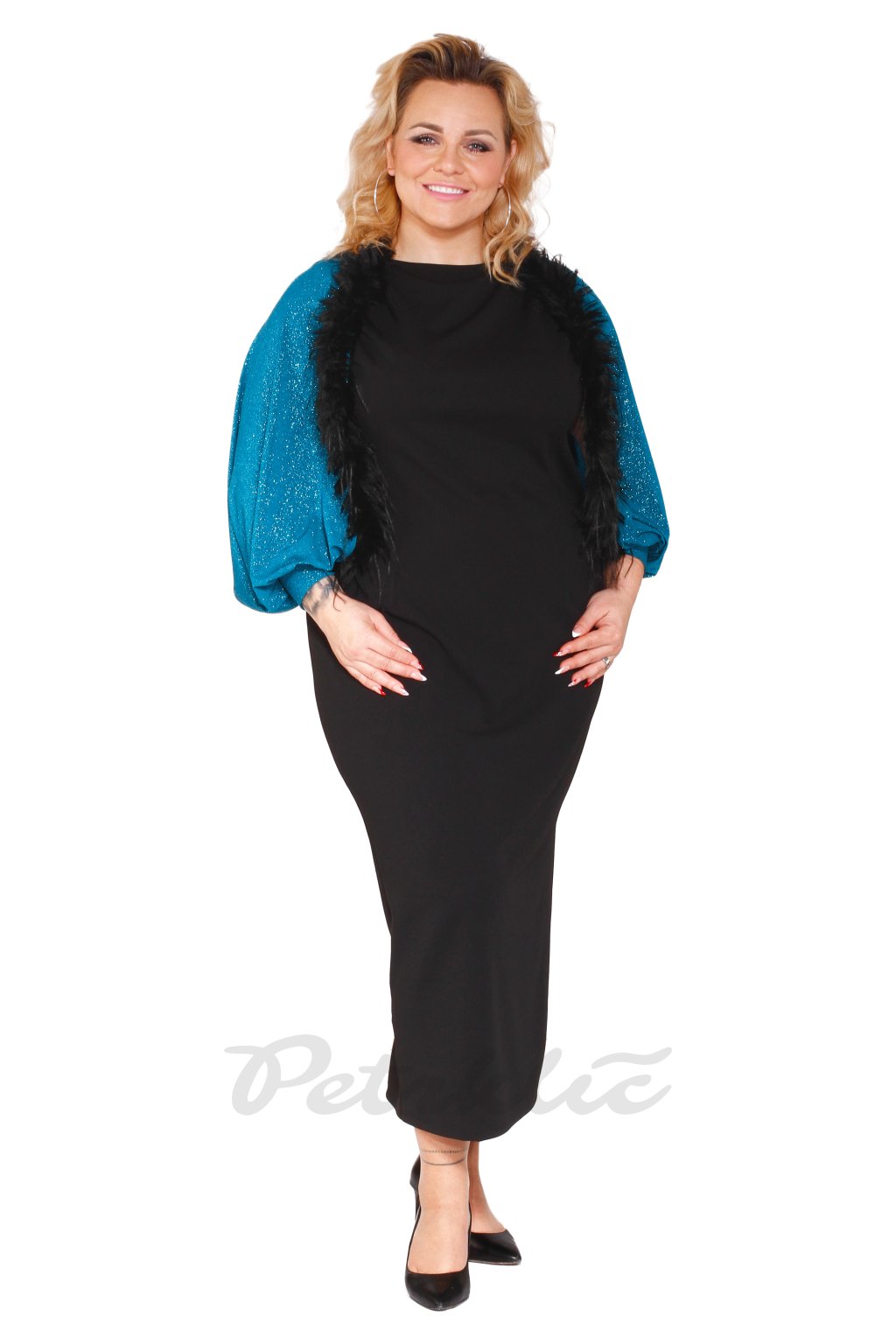 Rukávník - společenský tyrkysový s černou lehkou kožešinkou, bez velikosti