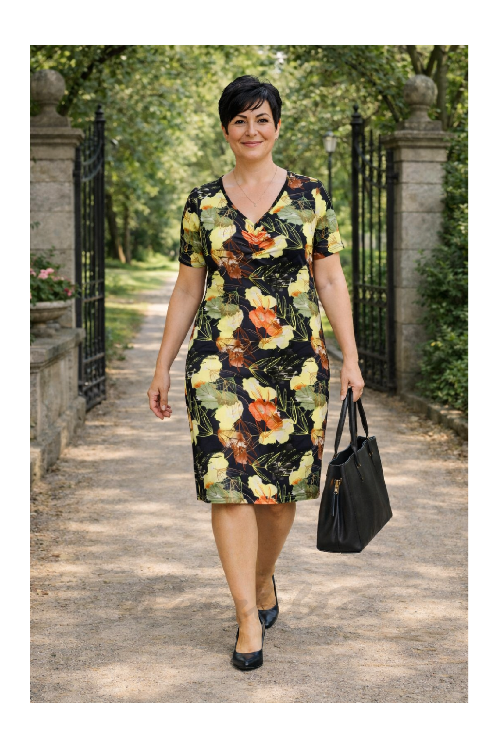 Letní šaty velmi mírně áčkového střihu. Možnost volby krátkého nebo 3/4 rukávu.